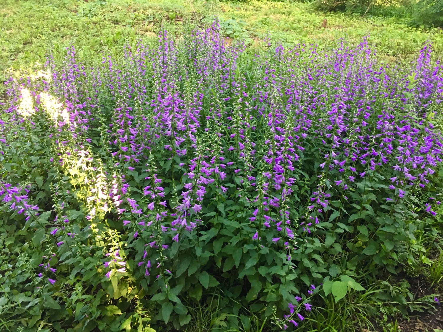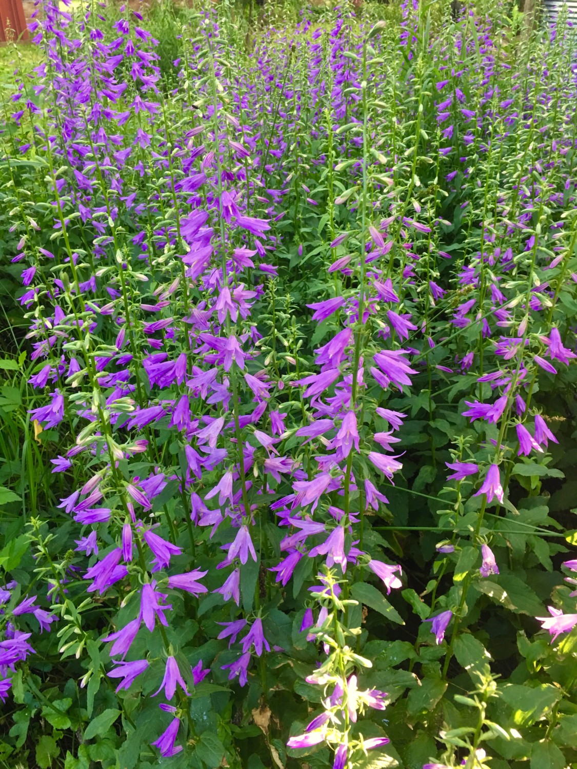 Ross, I believe they are a perennial. A tall Bellflower (Campanula).Another common name is Canterbury Bells. Obviously, they like where they are growing. They are a great pollinator plant for bumblebees and hummingbirds. They can be divided and moved around too. Enjoy!