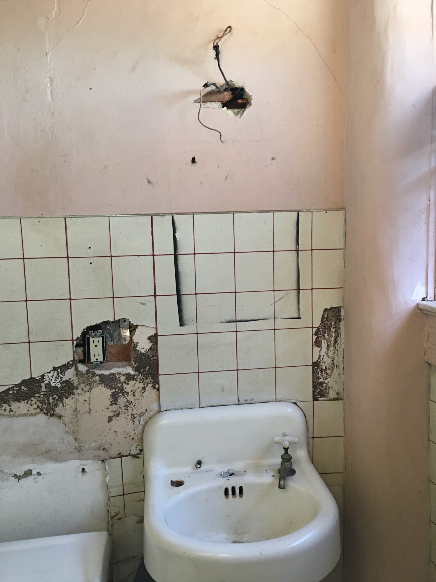 Well…I will, of course, install a 1890s gas/electric sconce back in this location. However, the sconce does not align with the 1929 sink. So…hummm. An issue to magically resolve.