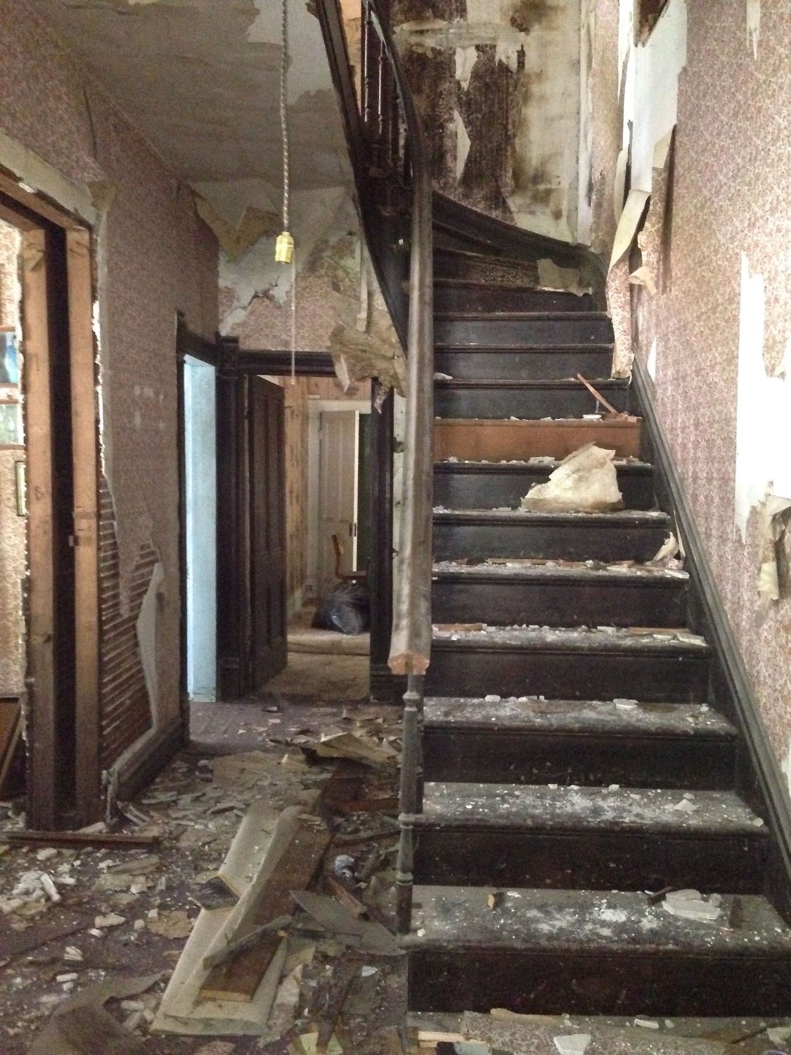 Look at that shingle work. Dang shame. I’m surprised so much is left in that home, I still see at least a door and a little more trim. Sad seeing the photos on the wall too. It would break my heart to leave photos of loved ones behind.