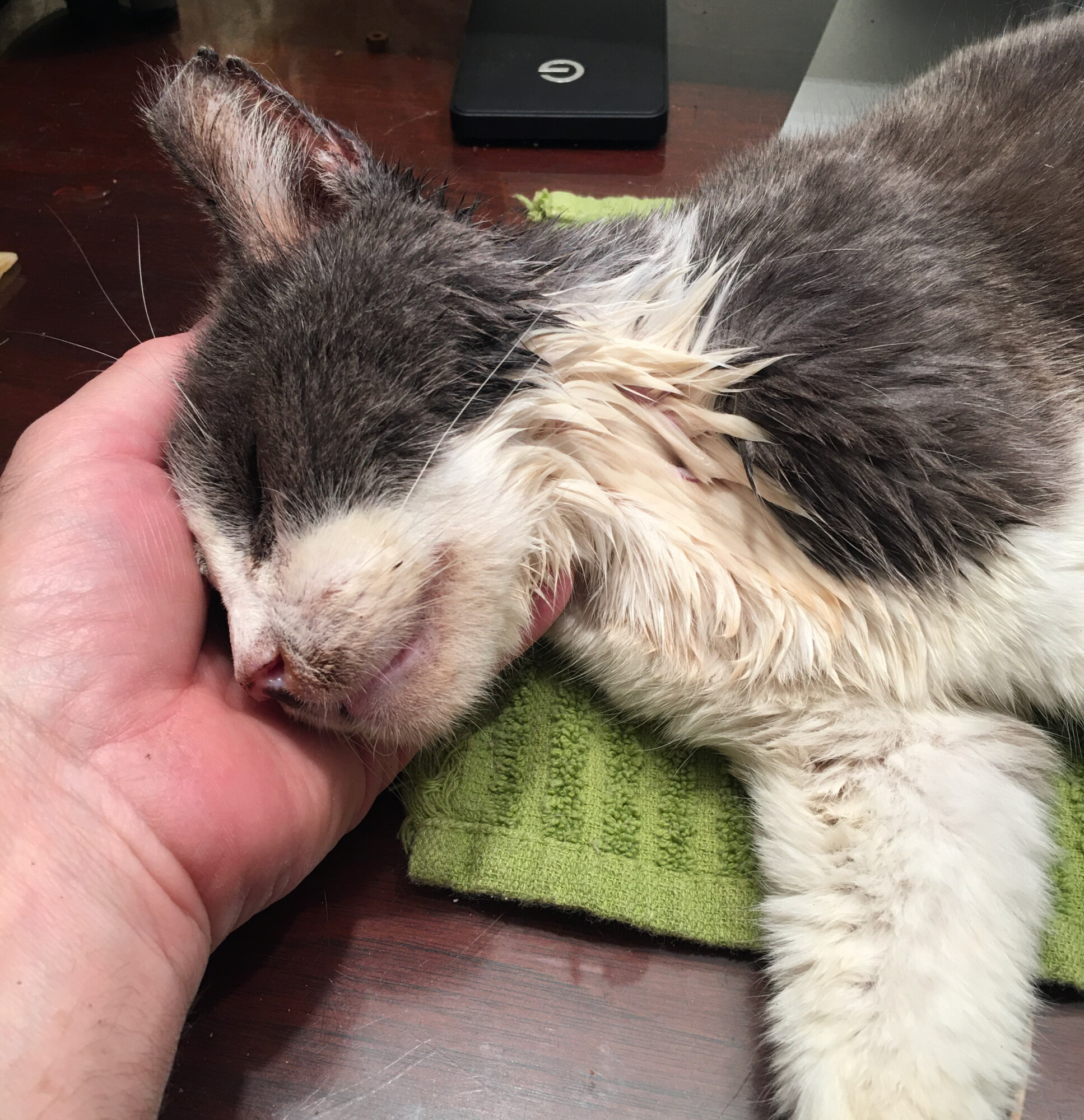 “It obviously an abscess that expressed. That’s normal. I’ll give you some medicine, and wash the area with soap and water for a few days. Cats self-heal really well. There’s no need to bring him in.”