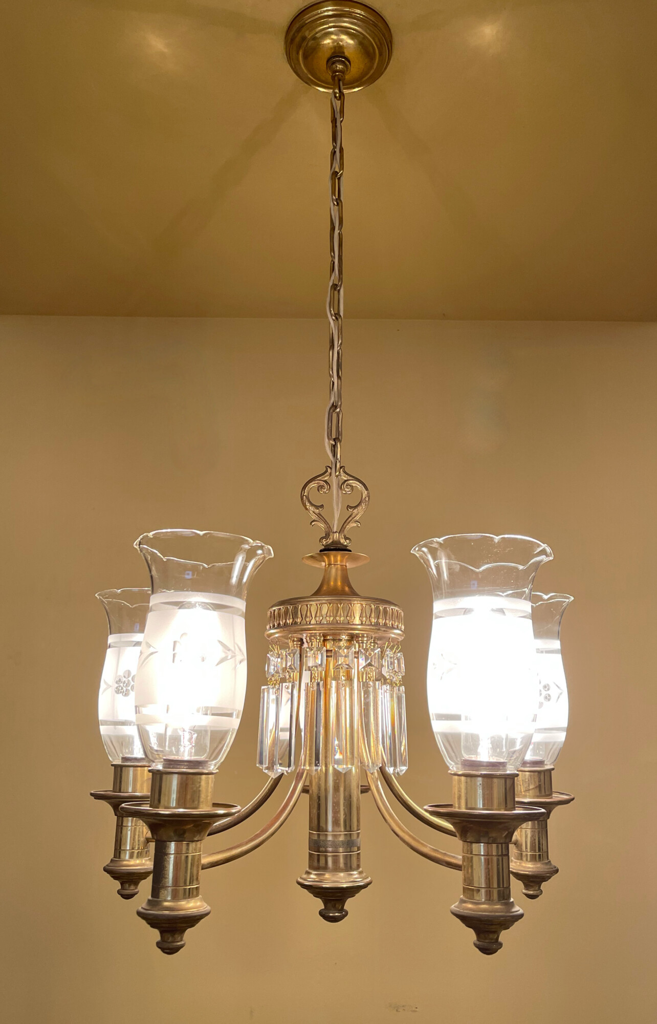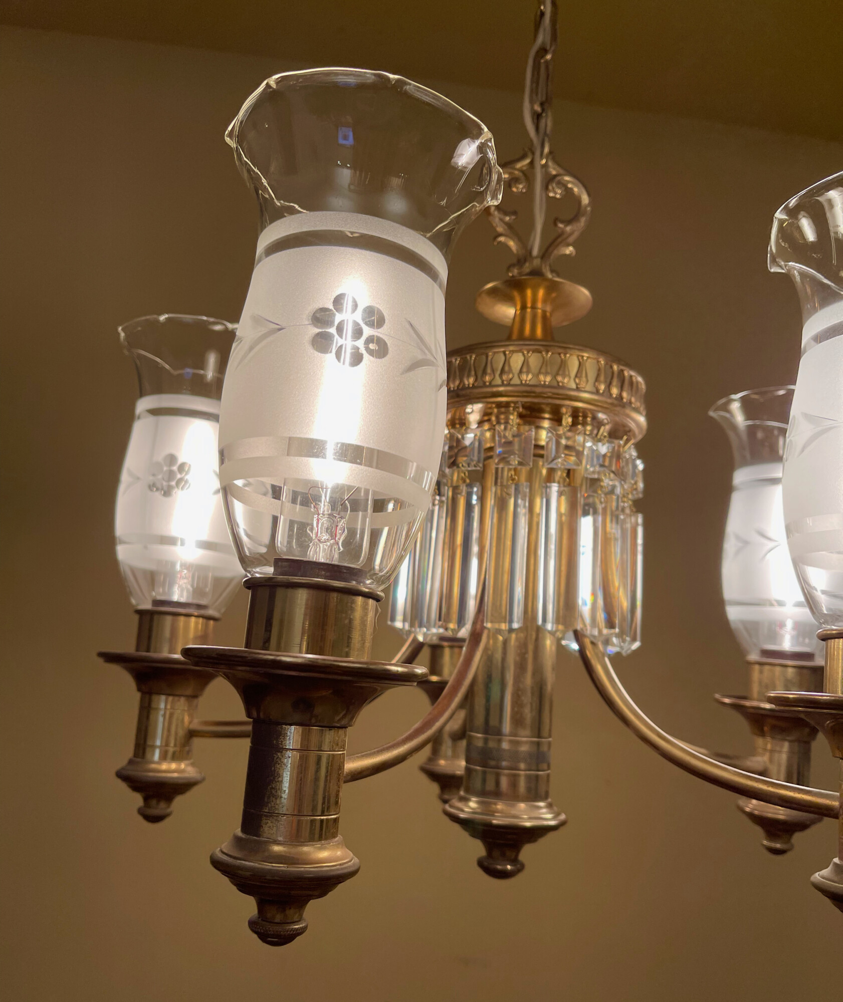 The wheel-cut glass shades are spectacular, with flowers and leaves CUT into the glass. I also like how the frosted horizontal lines are repeated in the brass.