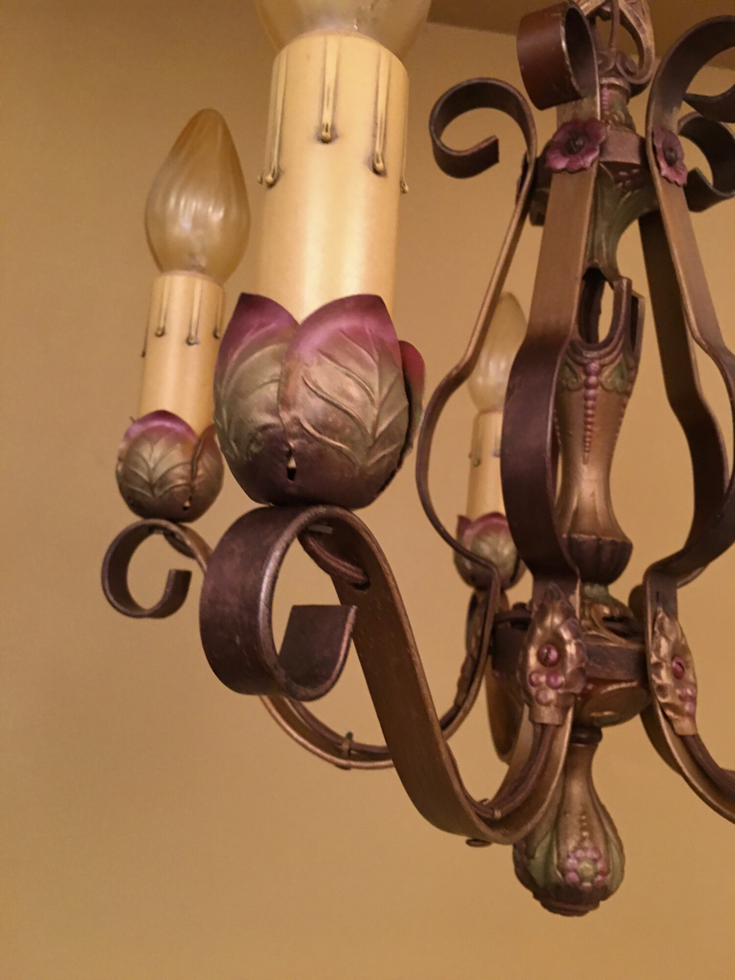 A 1920s “Pompeian” strap-style chandelier by Lincoln!