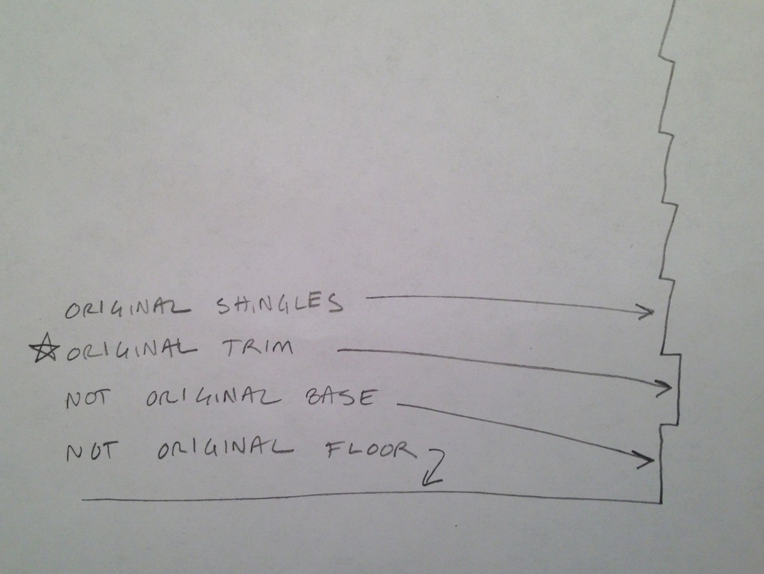 I had to read this a few times to understand. (Even though you marked it with a star, my mind was looking for something star shaped. Duh!) But where the original siding ends, is the level of the old floor? Is that it?