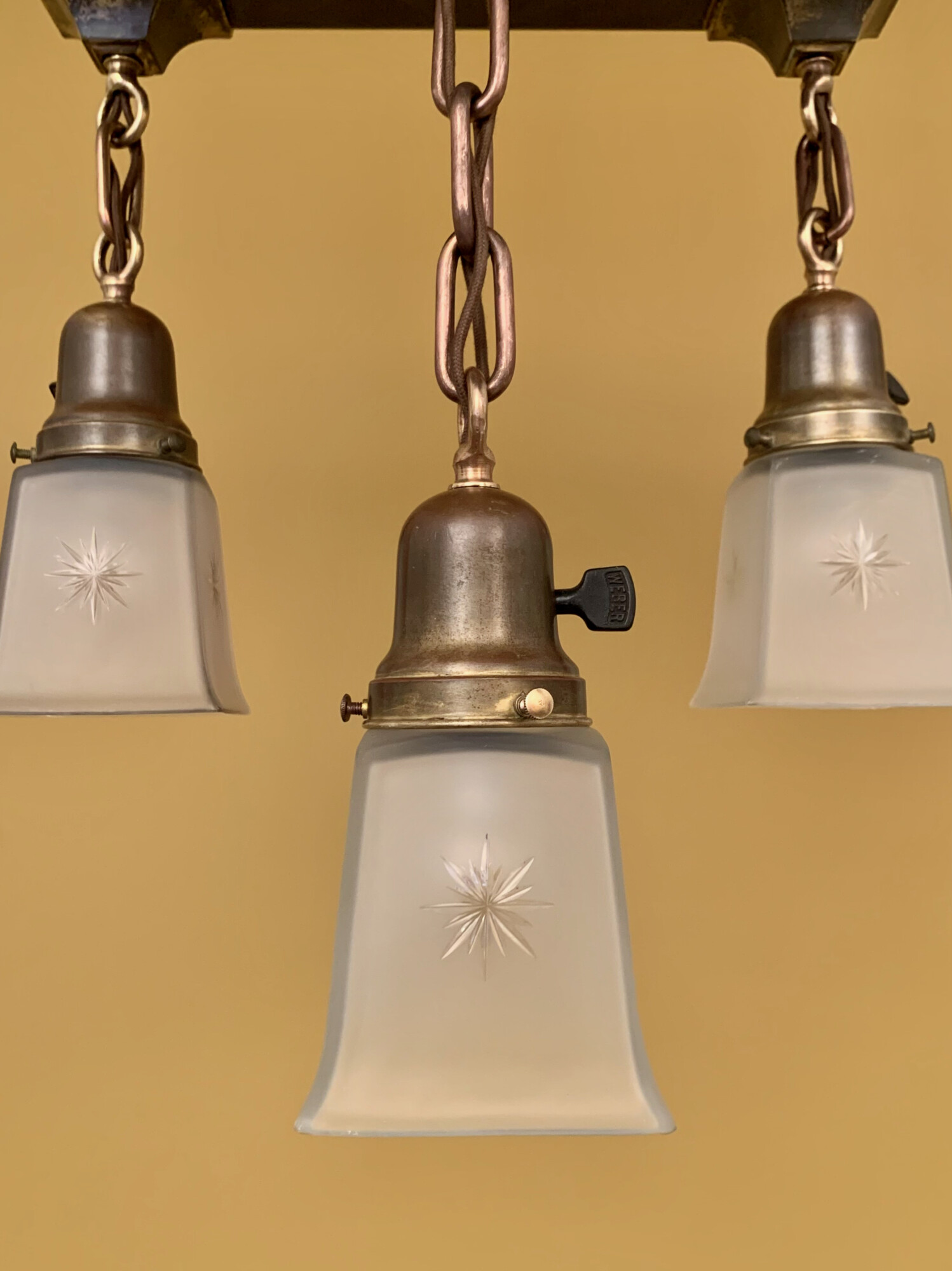 The shades appear to be original and feature wheel-cut stars! I listed the picture for sale last night. It sold an hour later. To me, this seemed like the universe thanking me for doing what I could to protect something of beauty. I do so love a happy ending.