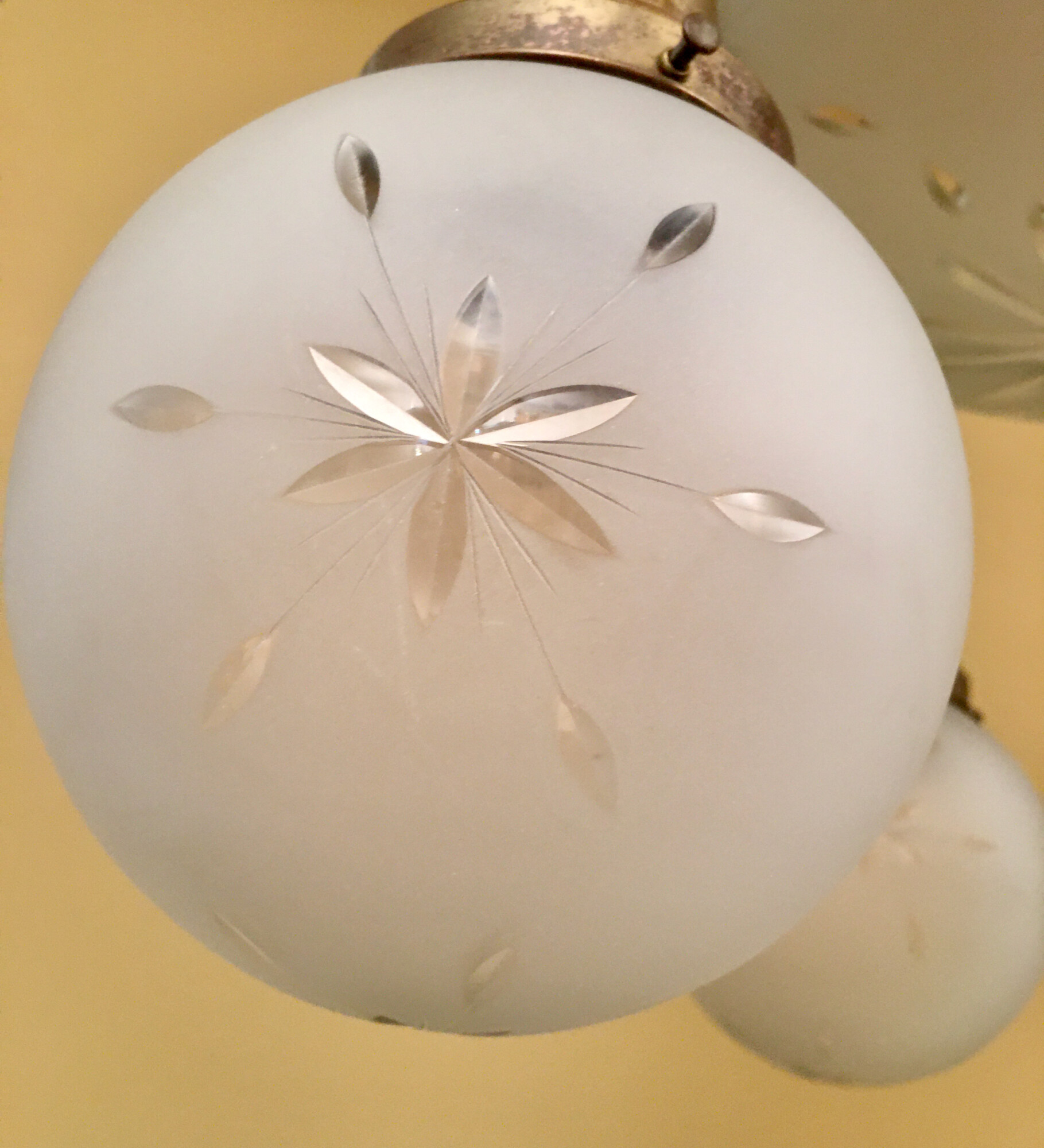 But the smaller shades were missing. The center shade had a dazzling wheel-cut starburst pattern and I explained that trying to find matching smaller shades was next to impossible.