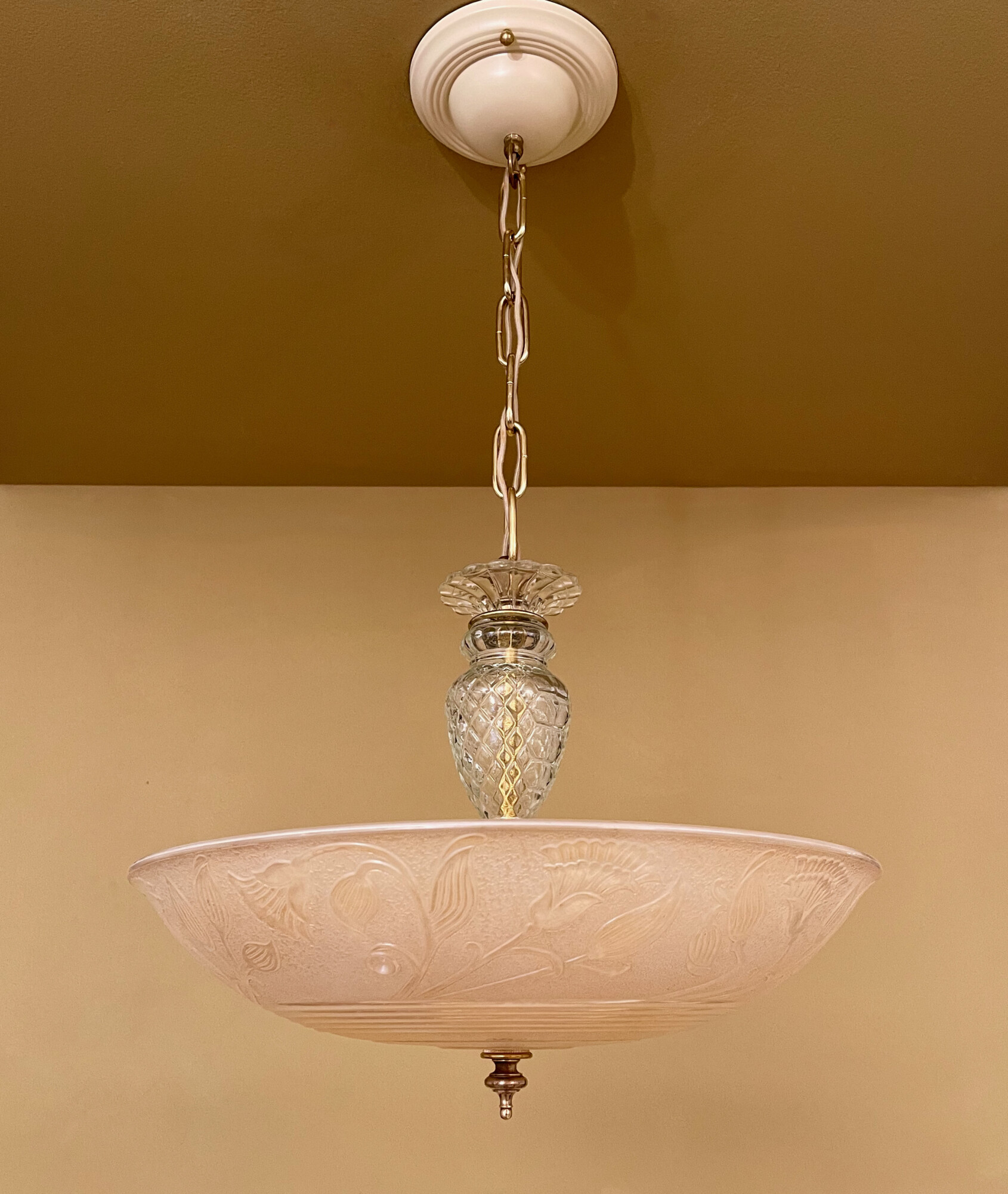 I listed this striking 1930s Deco chandelier featuring stylized lotus flowers, the national flower of Egypt, and often seen in ancient Egyptian art!