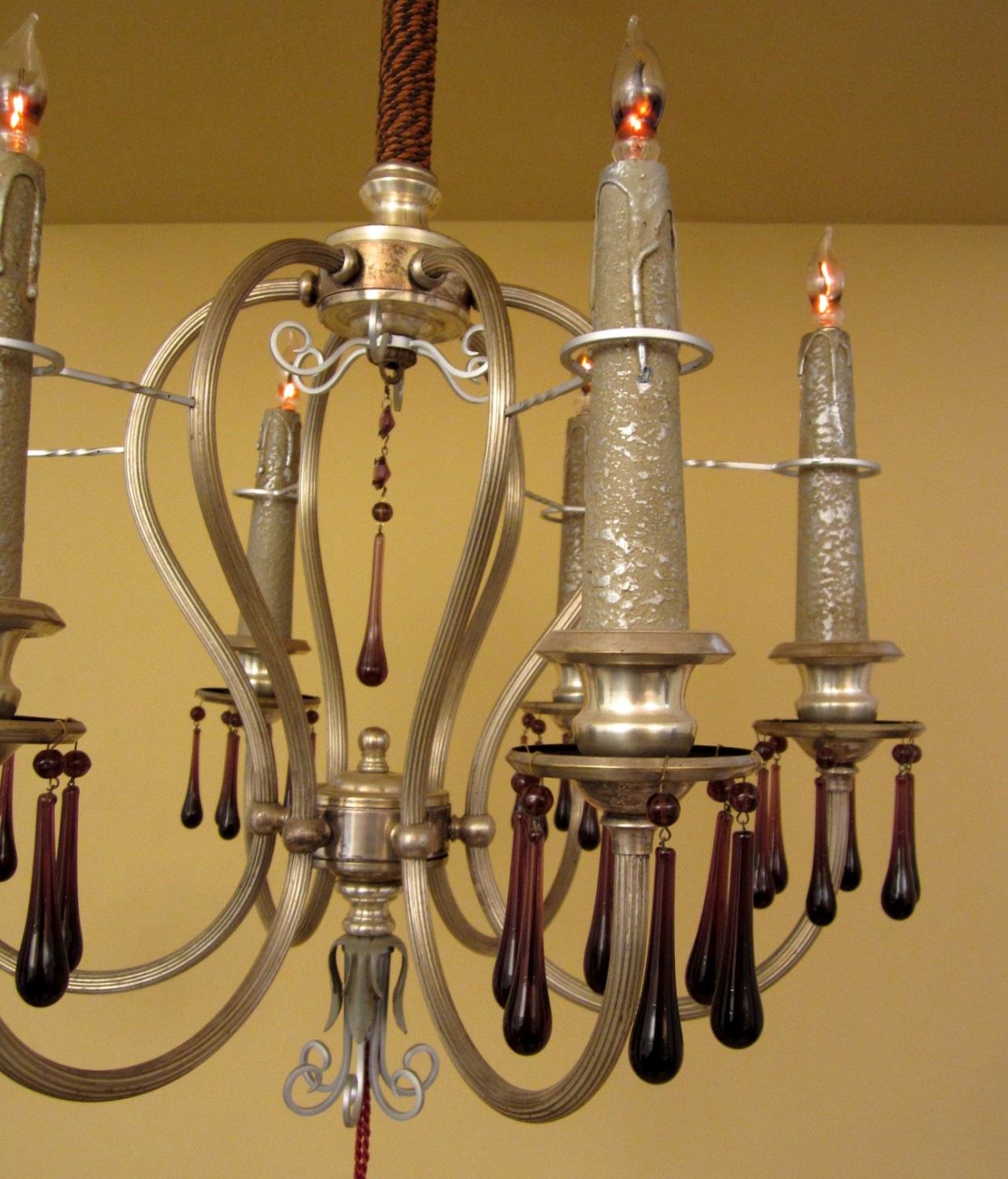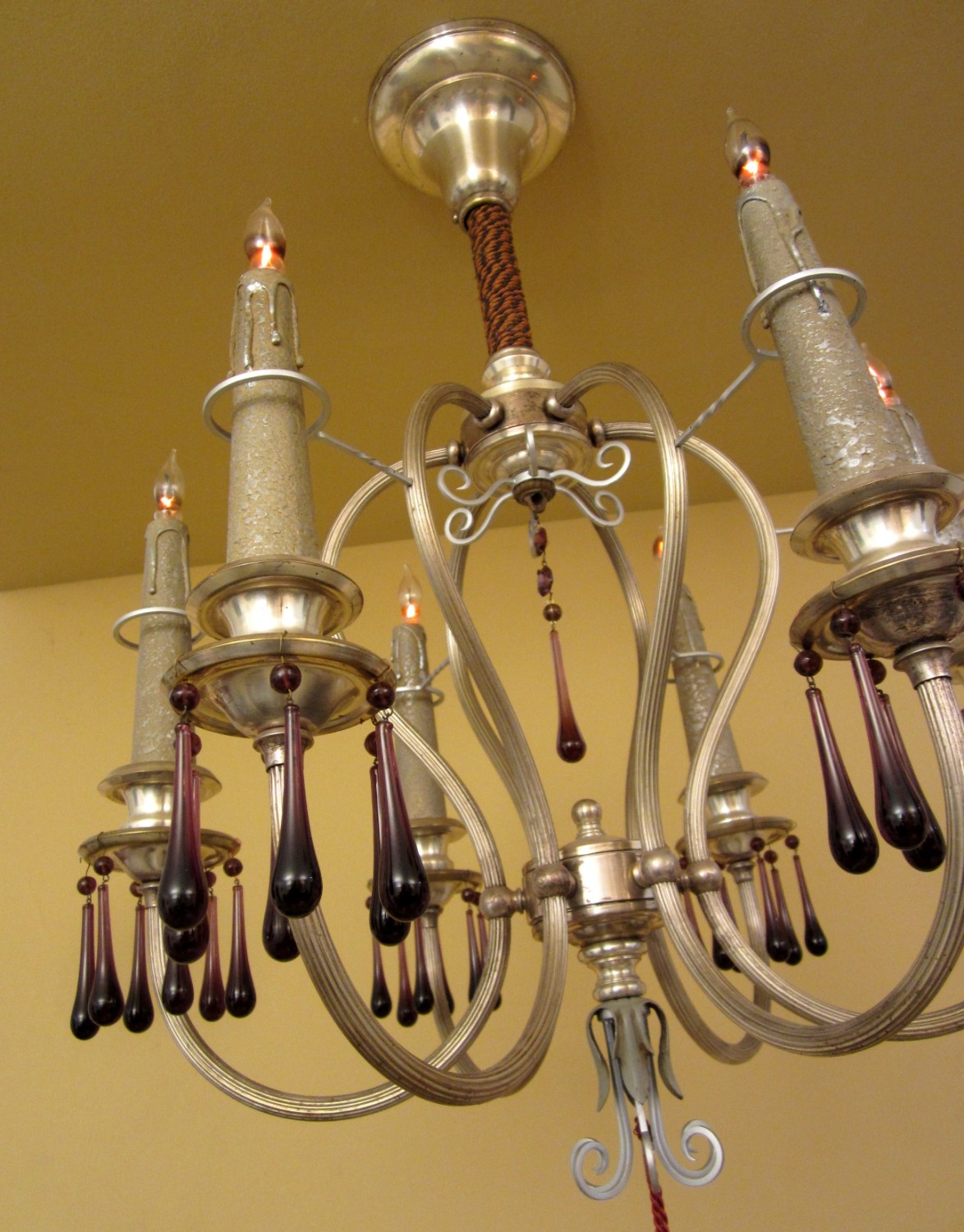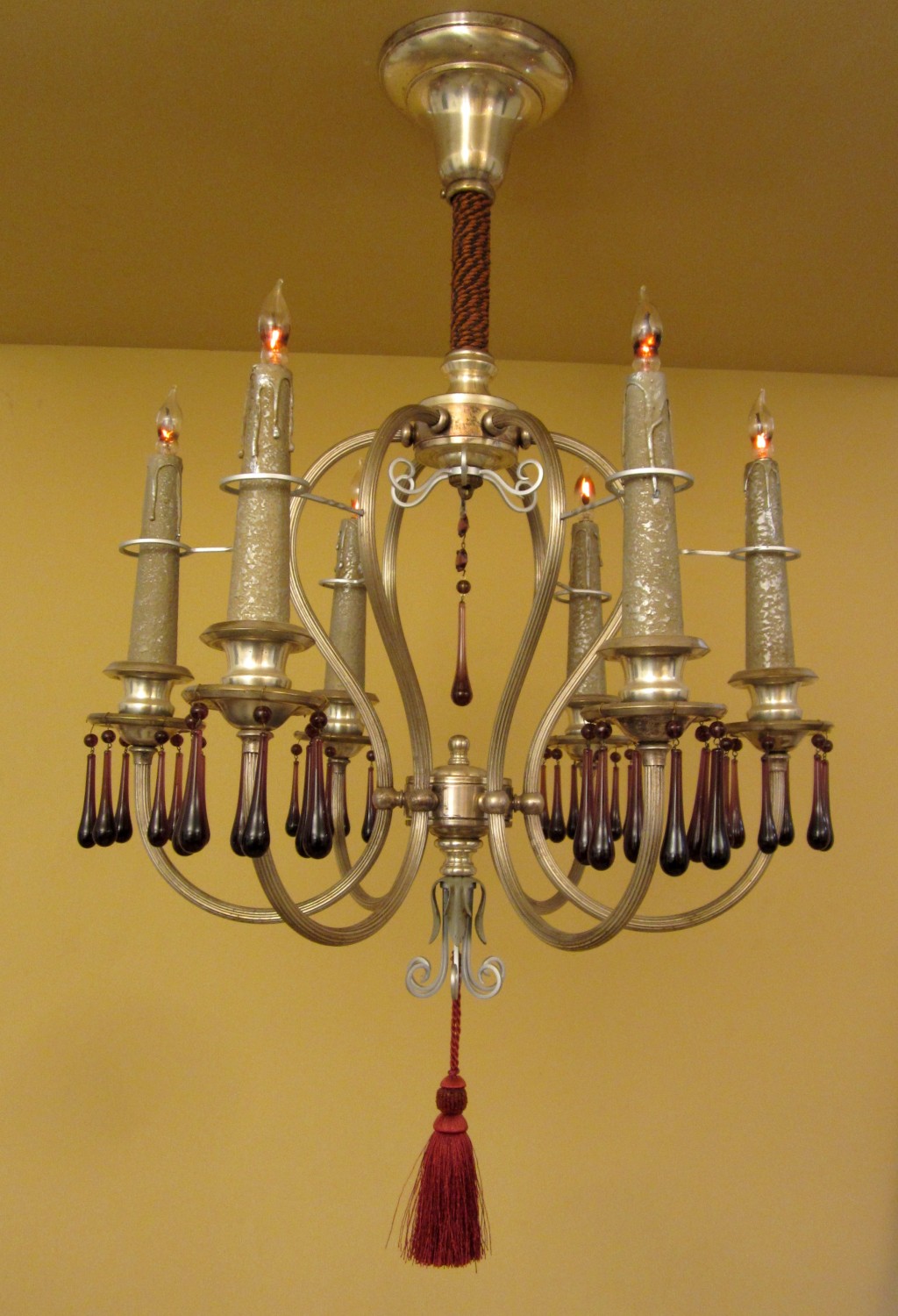 I found this pair of 1920s silver chandeliers in an antique store in Wichita, Kansas. I lusted after them for some time, and finally broke down and purchased them.