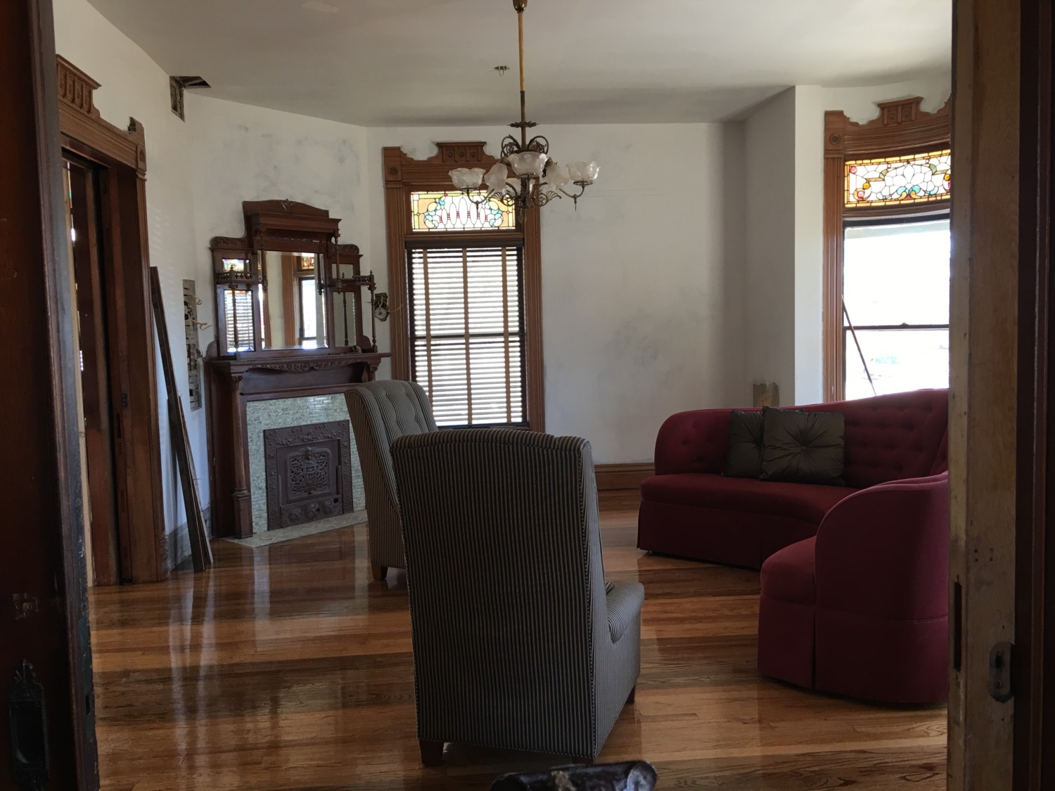 Amazing transformation! You used the colors from the stained glass and elevated their beauty in the doing. I especially love the upper medallions, shimmering like subtle little stars, and that fantastic chandelier. The period-contrasting pieces you’ve thoughtfully assembled juxtapose and pull together excitingly. The room is rich, inviting and alive again. I wish I could see it in person. Please show us an image of it all lit up by those gorgeous lights, now. Fabulous and surprising result! Totally worth it to obsess creatively now and again, I think. Pour yourself a drink and sit and enjoy awhile the great job you’ve done reviving this once-vibrant parlor! You’ve done it justice by throwing your heart into it. So proud of you!