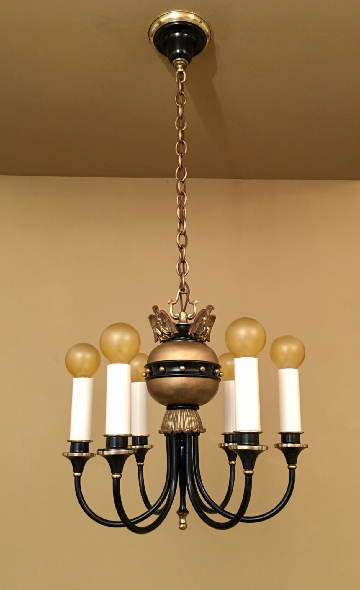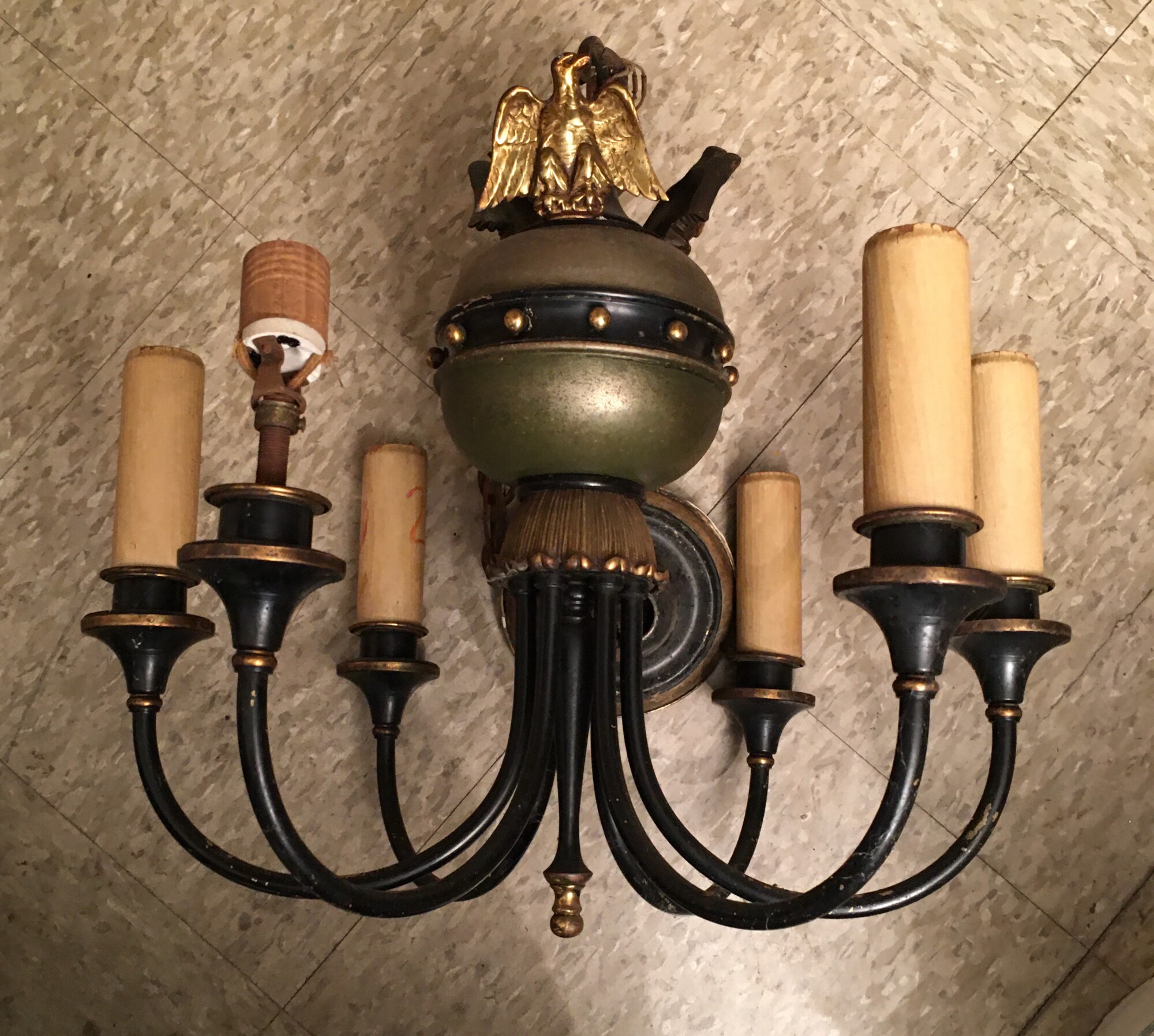 A sad looking 1930s chandelier. I had this in storage for many years as the work required to restore it would be vast. But then I felt bad it had been ignored for so long. Like a dog in a shelter never getting adopted.