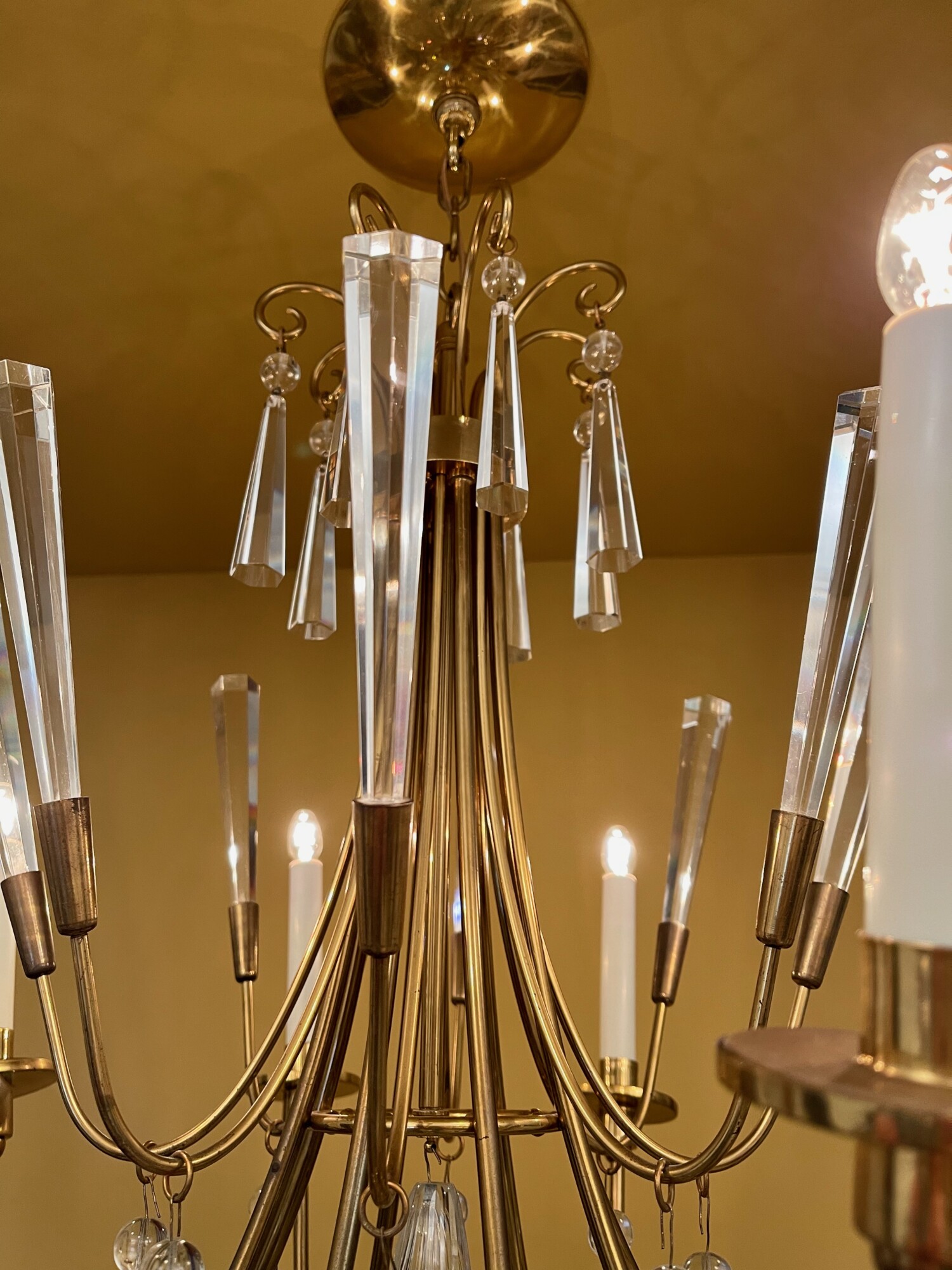 And there are yet eight more octagonal crystals hanging from delicious brass curly-cues.