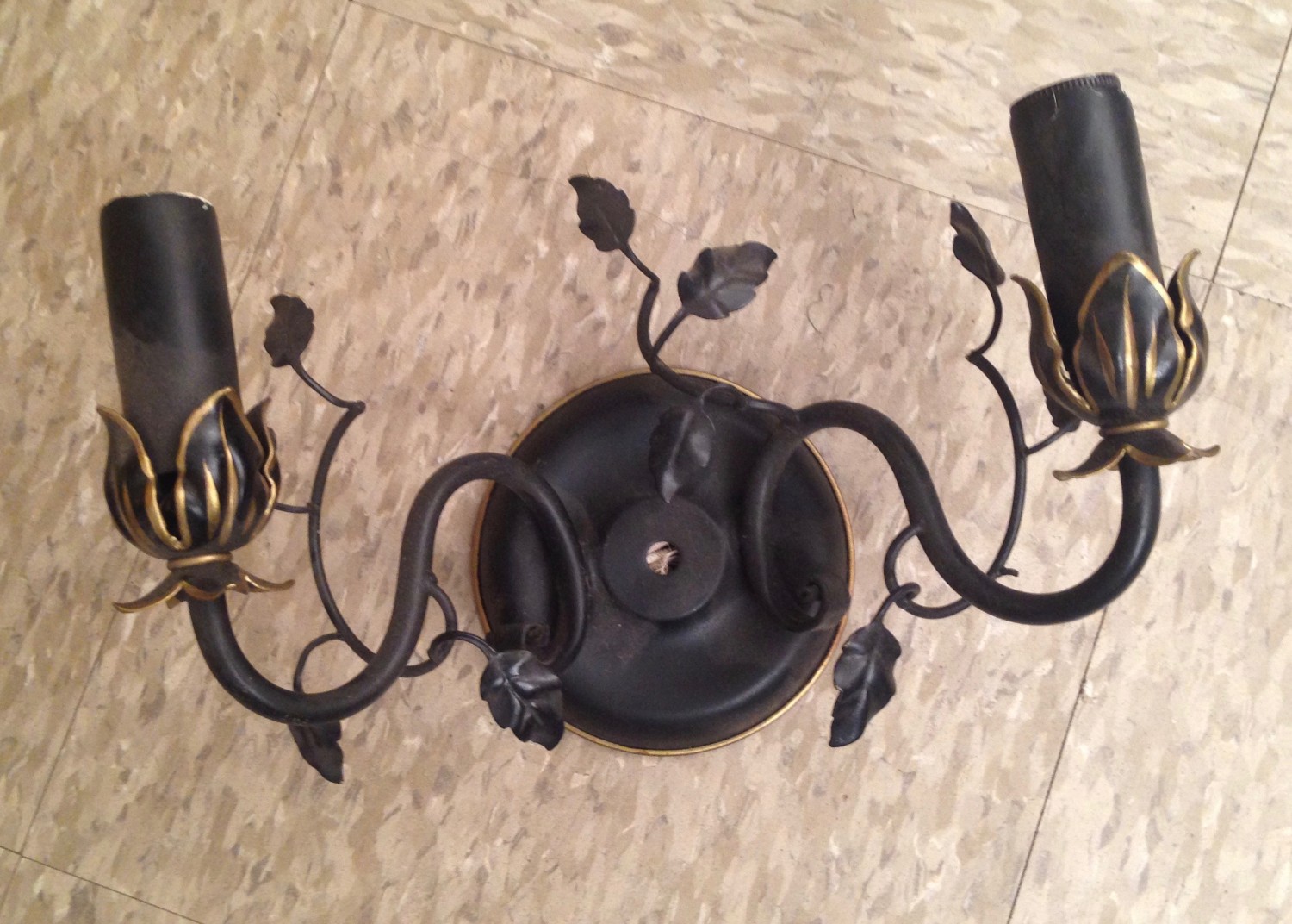 …I could make them look good. And I did! I initially thought the sconces were recent. But the wiring proved to be 1950s, way older than I had thought. This is when I got excited. The sconces are also in the Hollywood-Regency style, and, hey, who doesn’t love anything Hollywood-Regency? The leaves and vines also proved to be hand done, and with variations between each sconce. In the end, what seemed initially unprepossessing proved pretty cool.