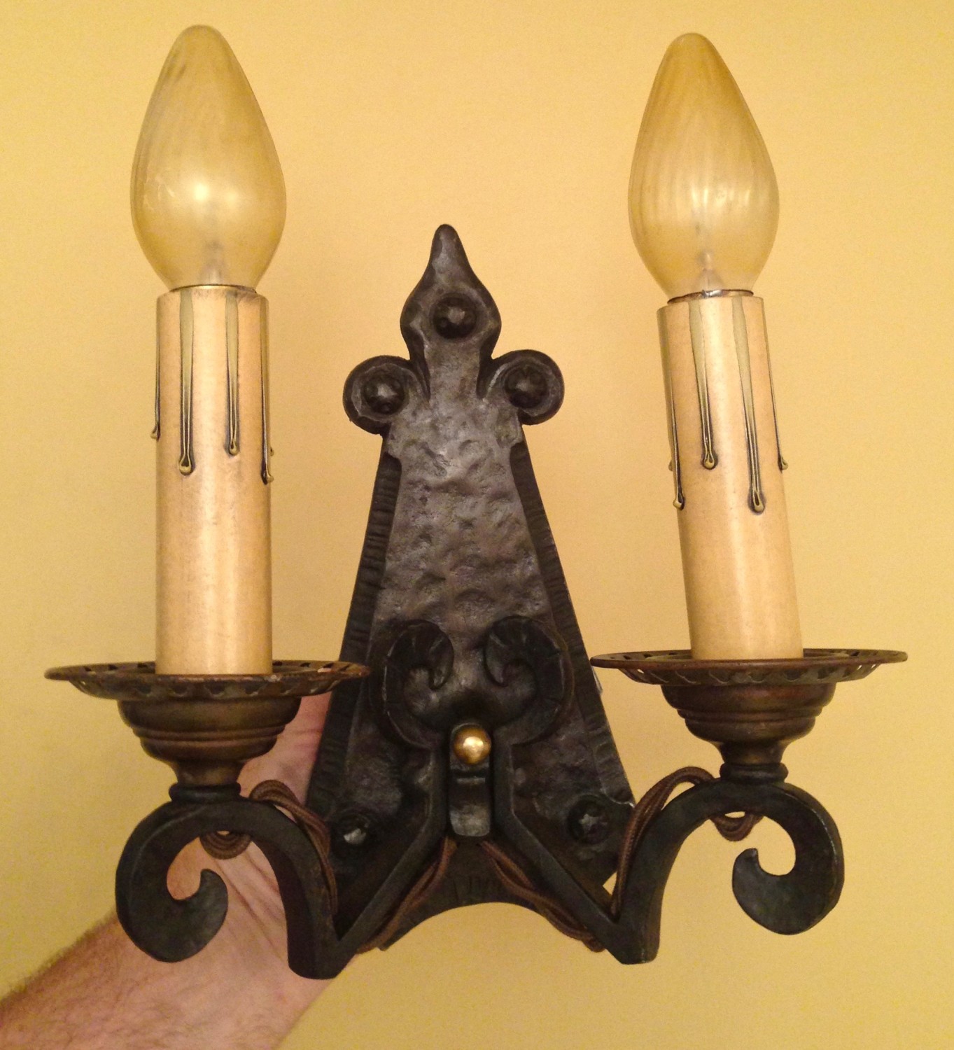 When first offered, the fixtures were impressively expensive. The chandelier was a whopping $70, and this 2-bulb sconce was $27. I know, you laugh, but you could buy a lovely 5-bulb ceiling fixture from the Virden Company, for example, for $20.