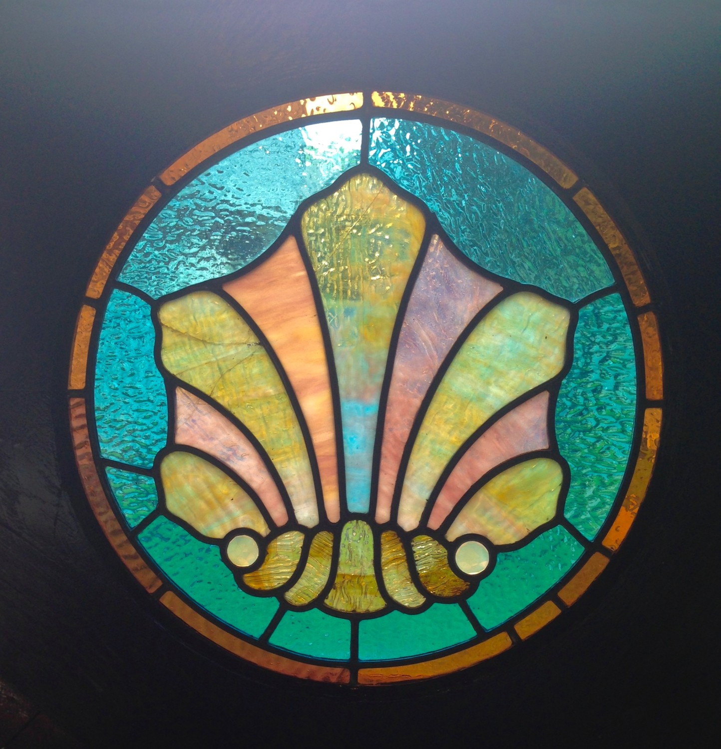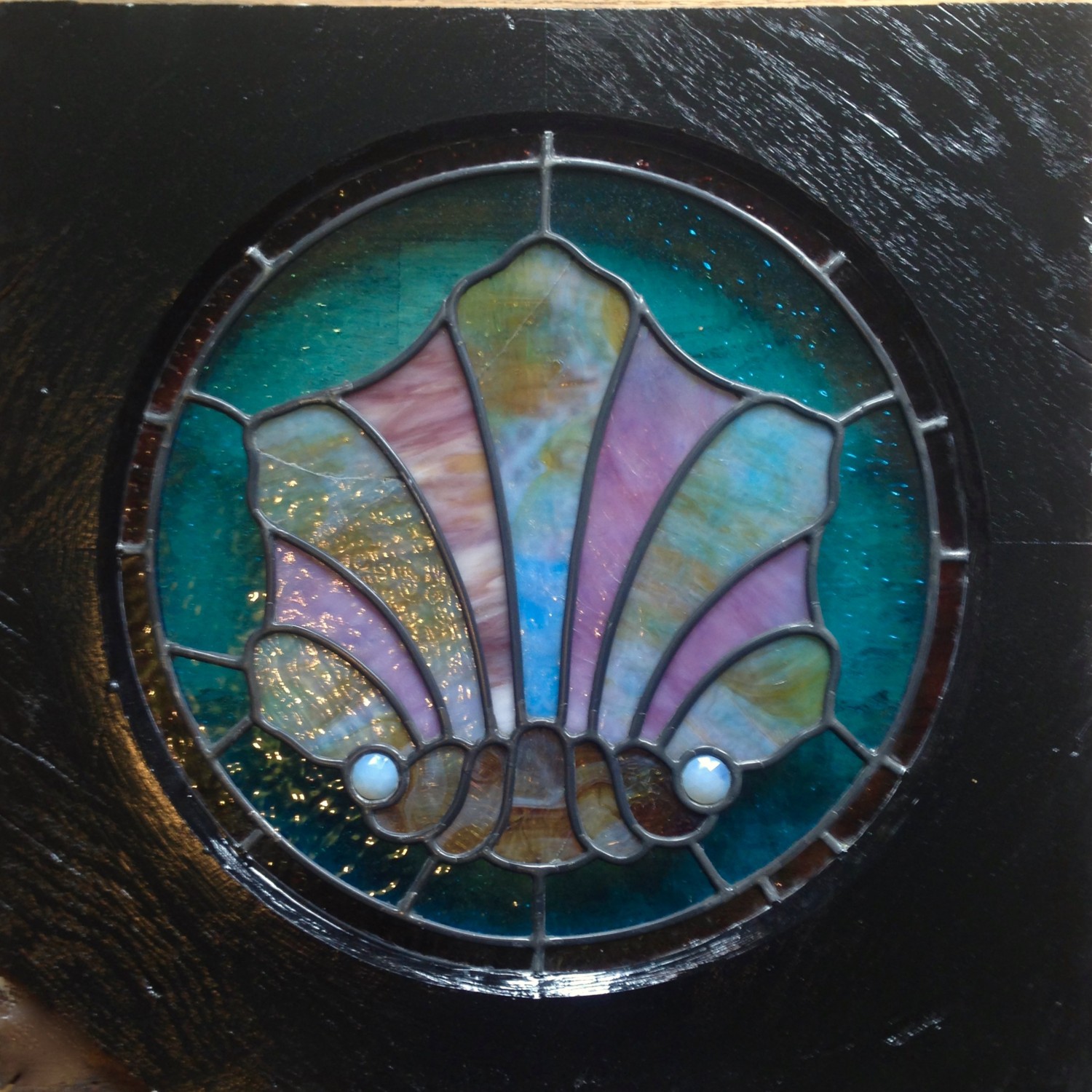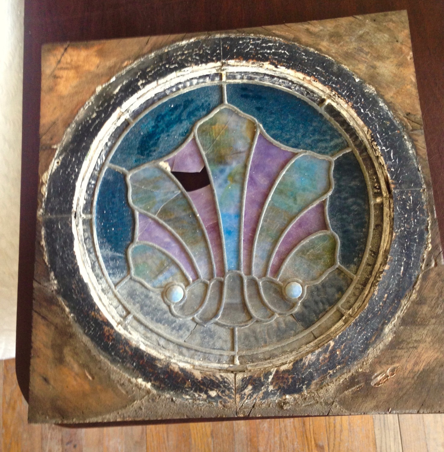 BEFORE. The stained-glass window from the telephone closet. Poor dear.