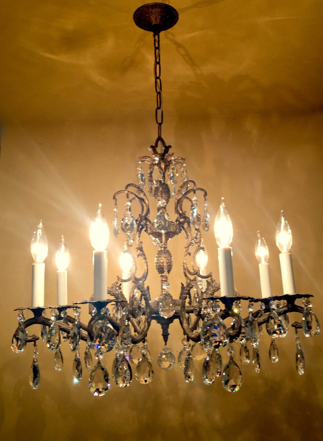 This sad looking 1960s Hollywood-Regency chandelier had lost all its bling! So very very very sad! I just had to save it! To restore its glamour!