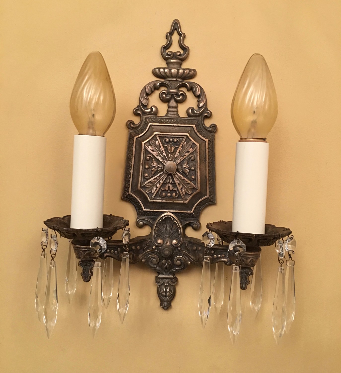 I purchased a pair of 1920s sconces, richly detailed and with an unusual finish. Are they silver or gold?