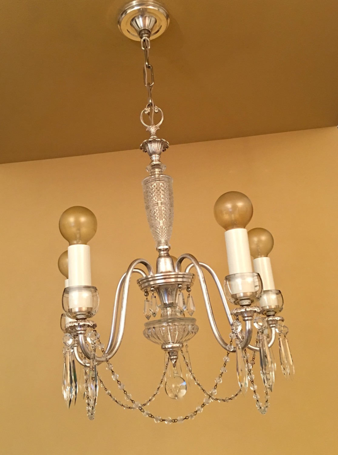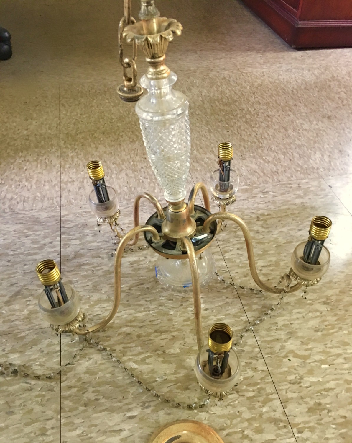 I have a great affection for crystal chandeliers from the 1930s and 1940s. So, when I came across this chandelier, which appeared circa-1940, I had to have it. Yes, it was not much to look at, but I suspected the chandelier had…potential.