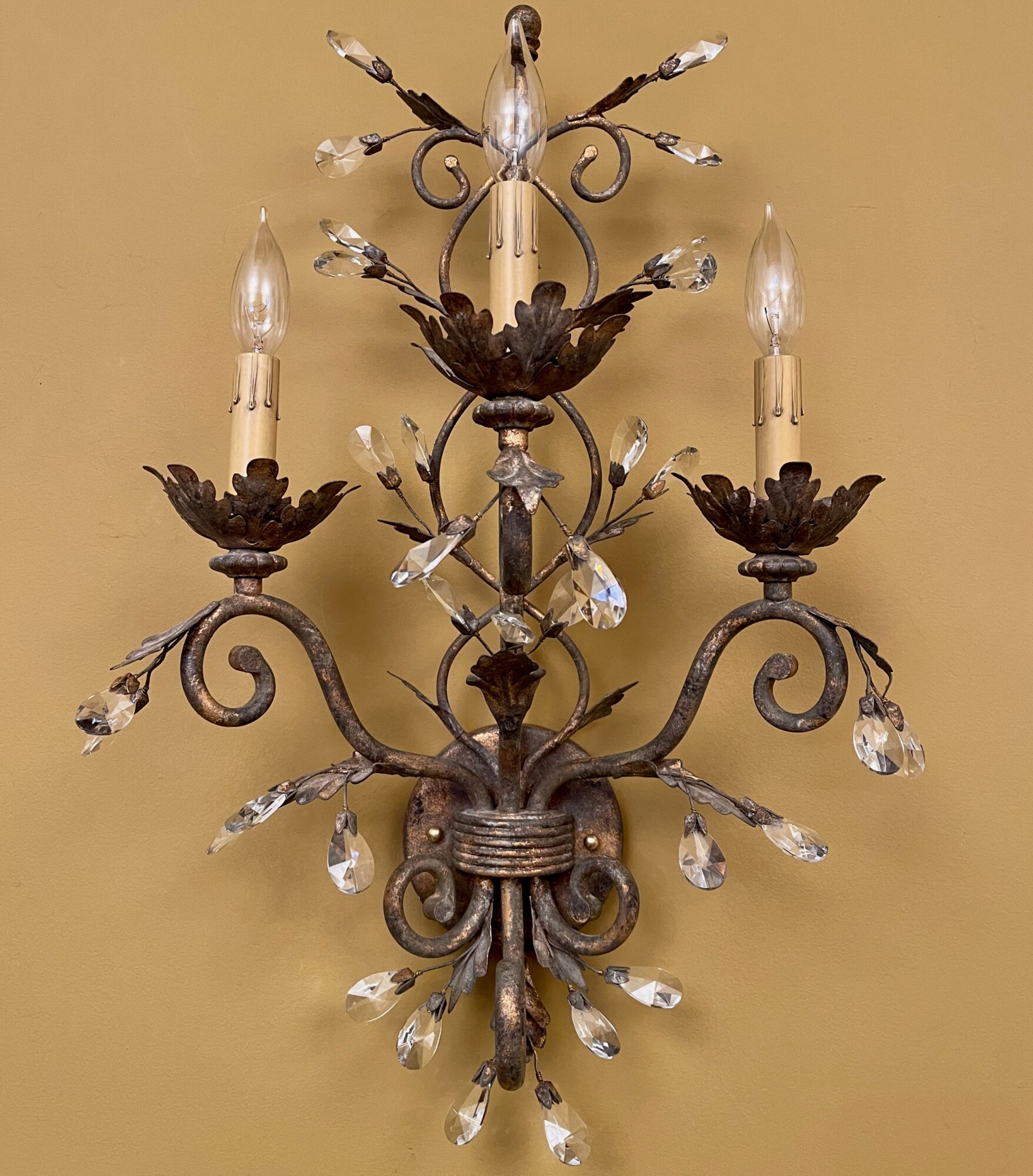 Kenny found a pair of these crystal sconces on Facebook Marketplace. I was pretty sure they were not that old. But they were large, always a good thing. They were also cheap. It seemed obvious I could, likely, make money. And by buying them Kenny could get a finder’s fee, something I support. It is hard to live…sigh…on a teacher’s salary.