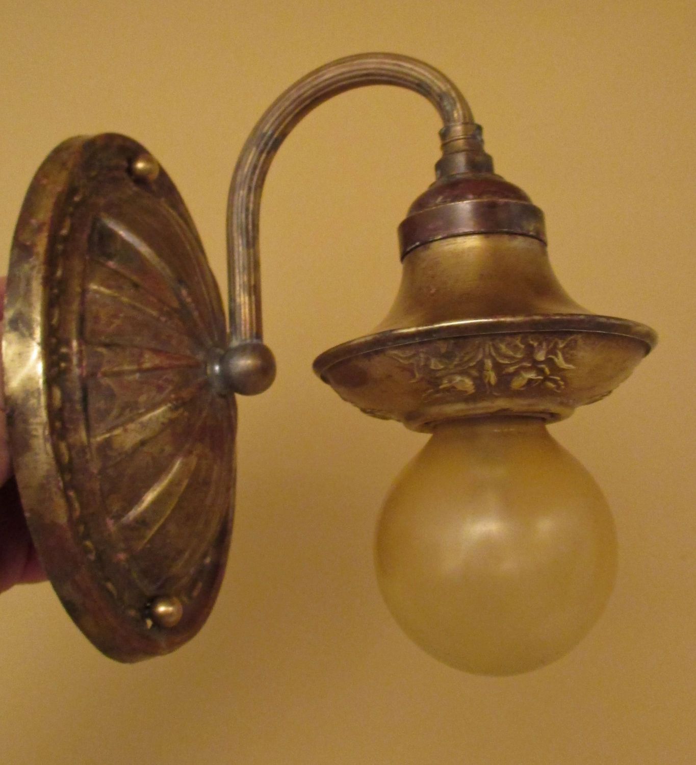 One sconce was missing some parts, but I was able to restore two sconces. They looked pretty good under all the old paint. As is usual for me, I worked to retain the lovely old patina and did not polish the sconces bright.