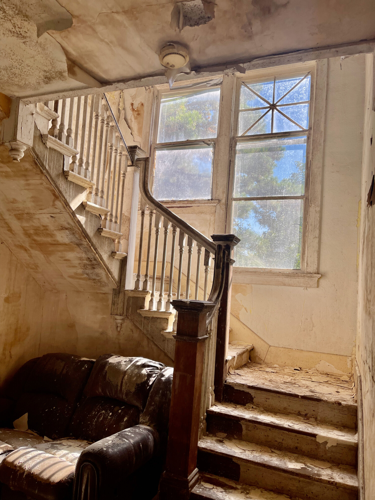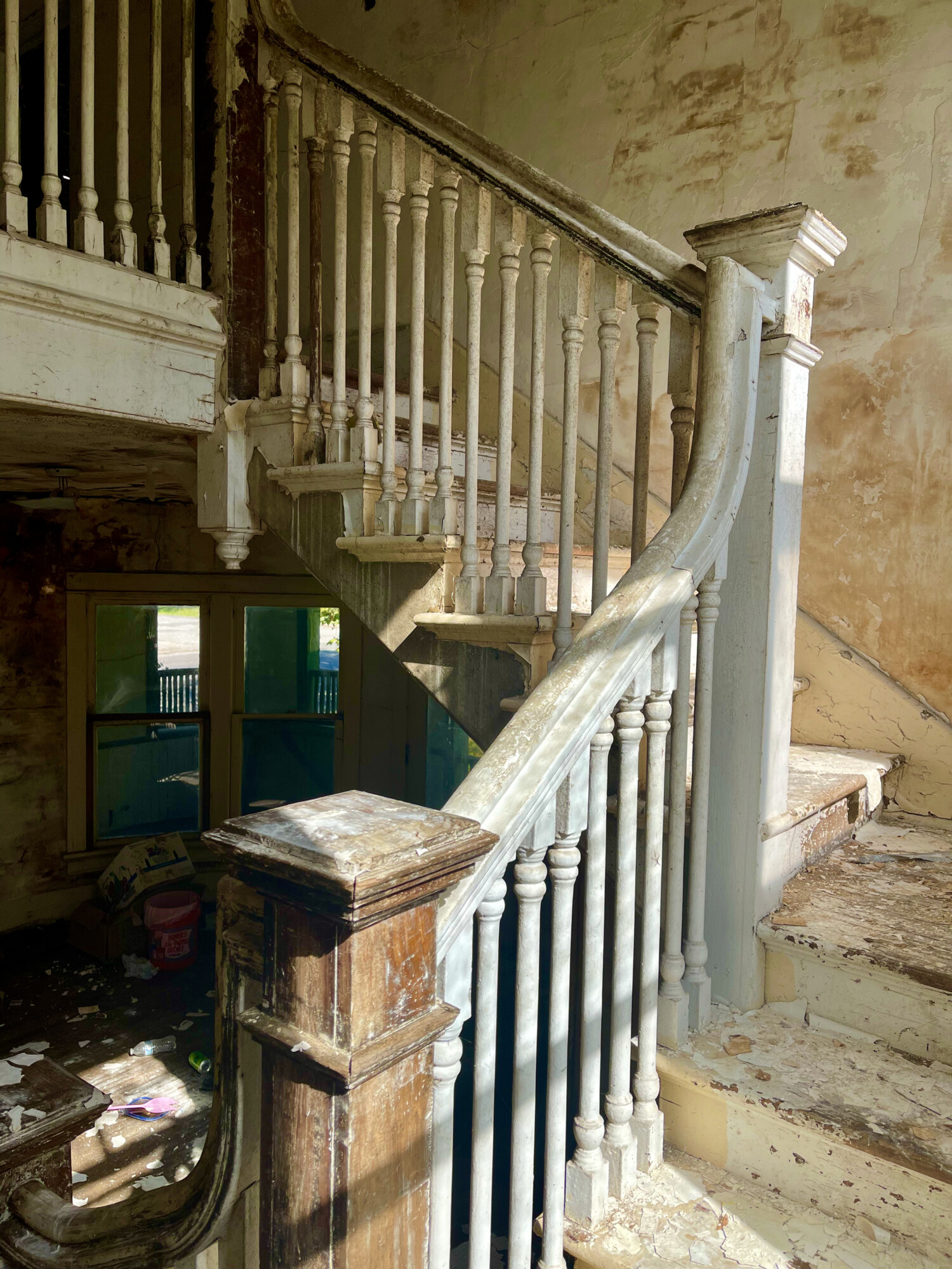 Oh my, the curves on this lady and the light in the stairway! Wow! So sad to see it in such a state. What a shame the owner has just abandoned it. 😔 A house with such lovely features, though not a huge house, a sizable house, with a good size lot. Would go for an obscene amount in my area, even in its current state. Maybe it can be highlighted on one of the old house social medias to get some attention. Would love this house, soooo much potential, and so much still there that is salvageable. Good luck curvy lady, I hope someone deserving makes you their home.