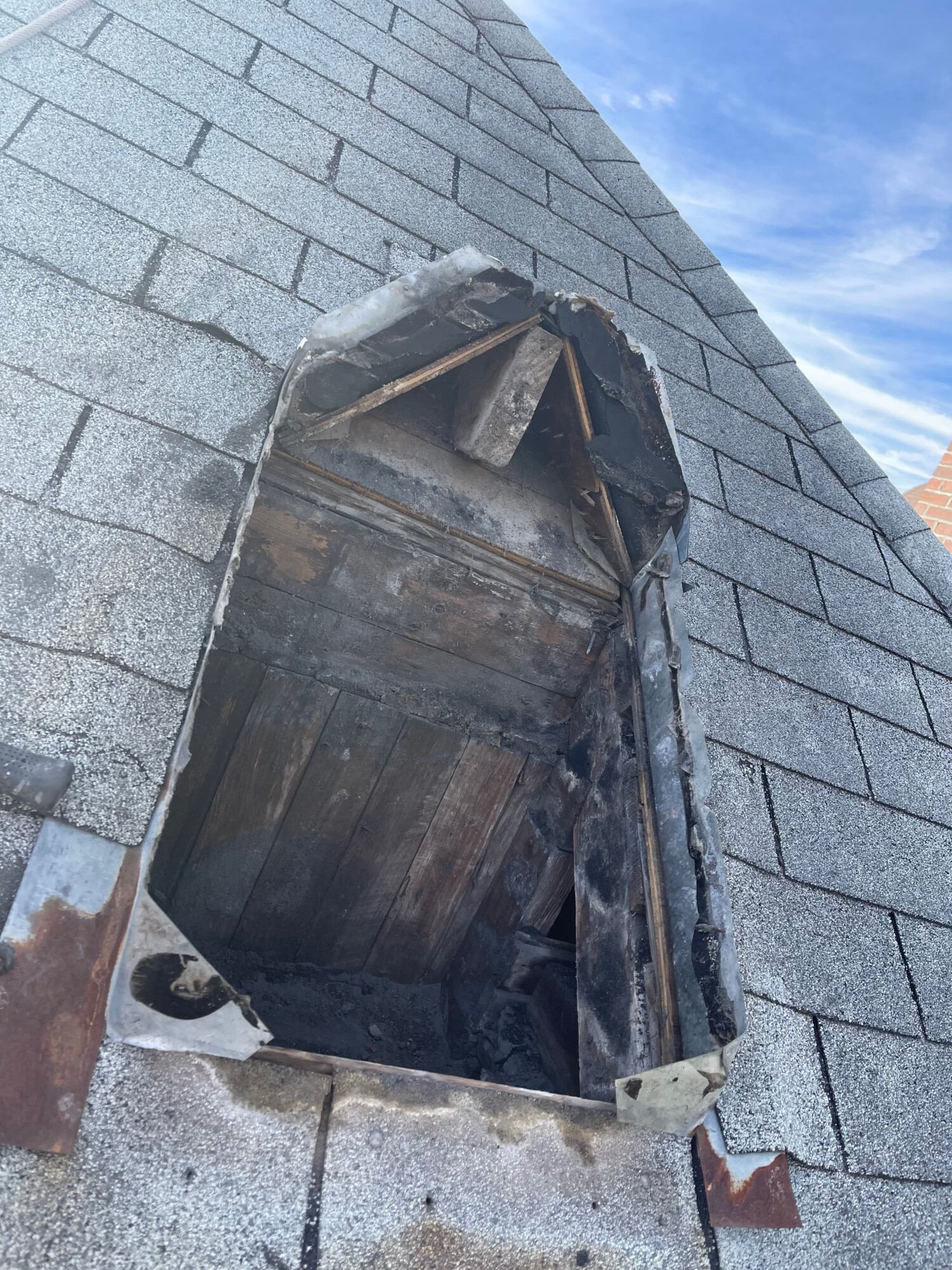 The roof scaffolding was installed to repair a hole in the roof (part of the Violation Notice) after I removed a chimney in 2021.
