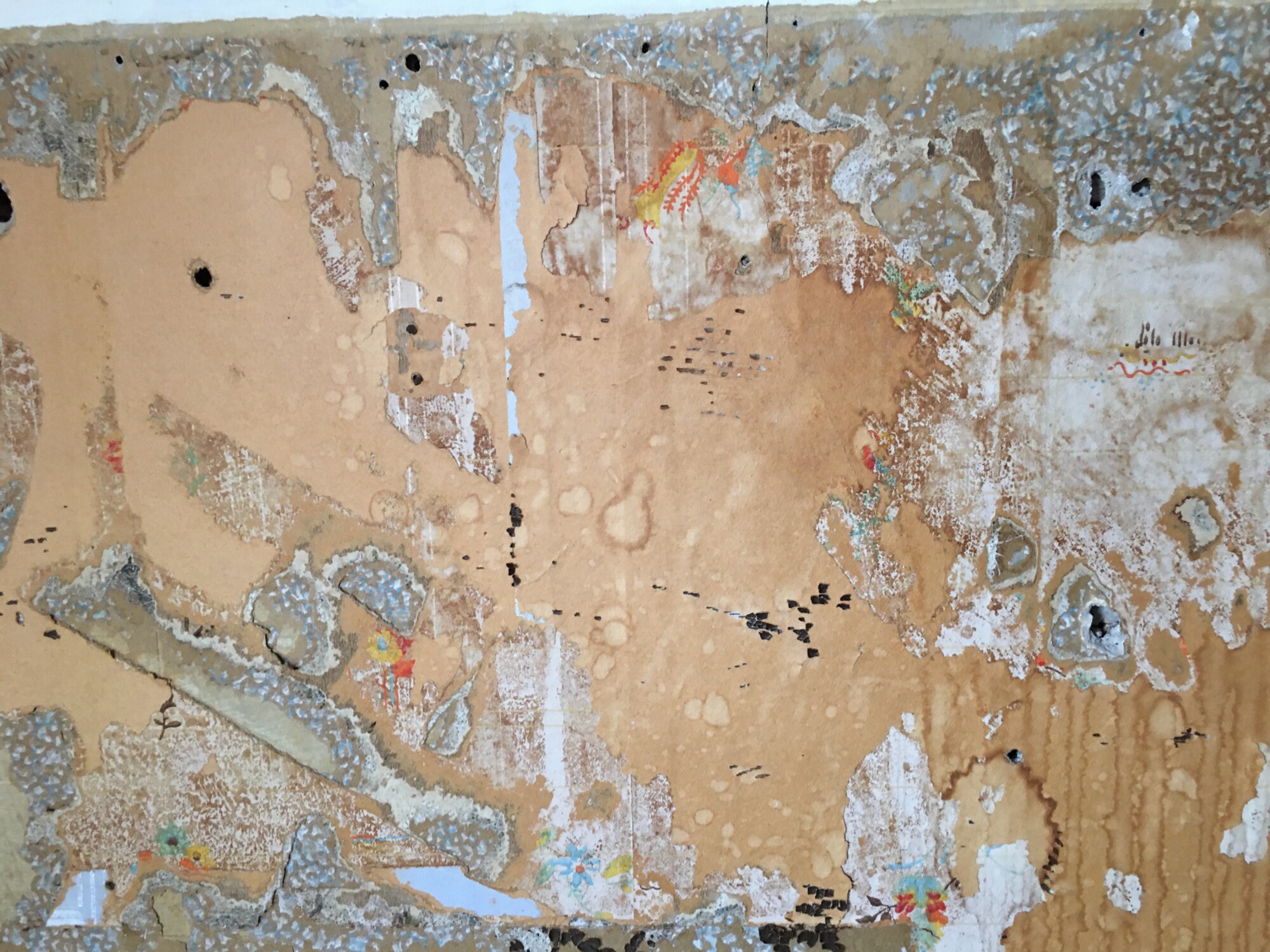 1. More than one layer comes off the wall with the white paper