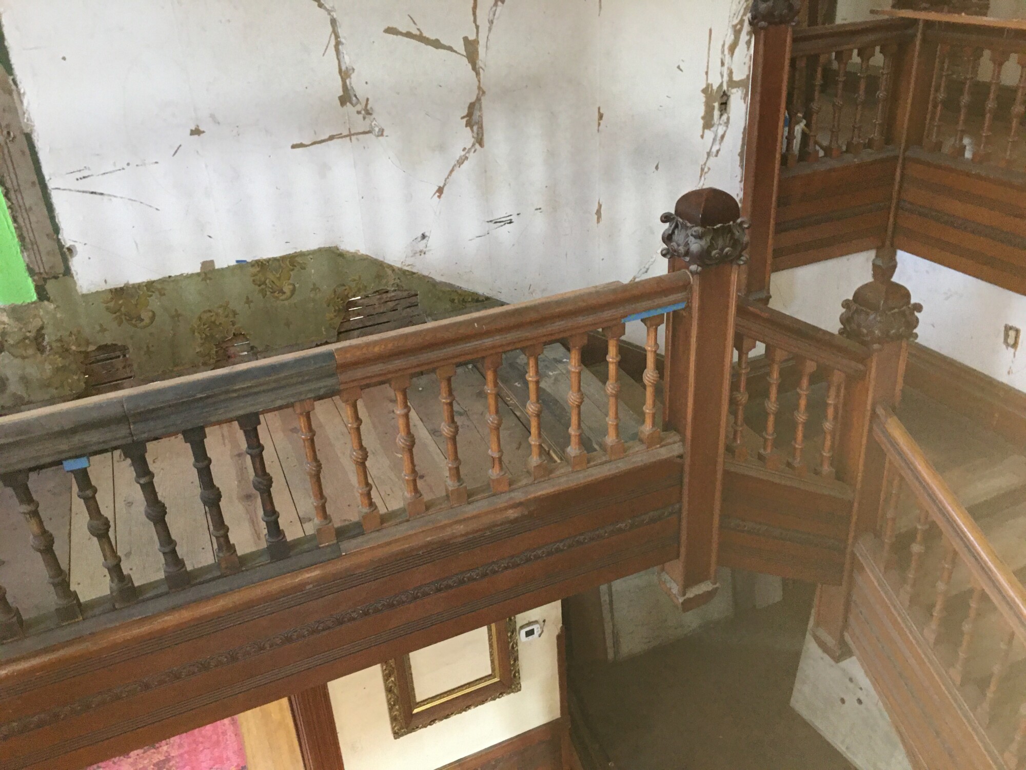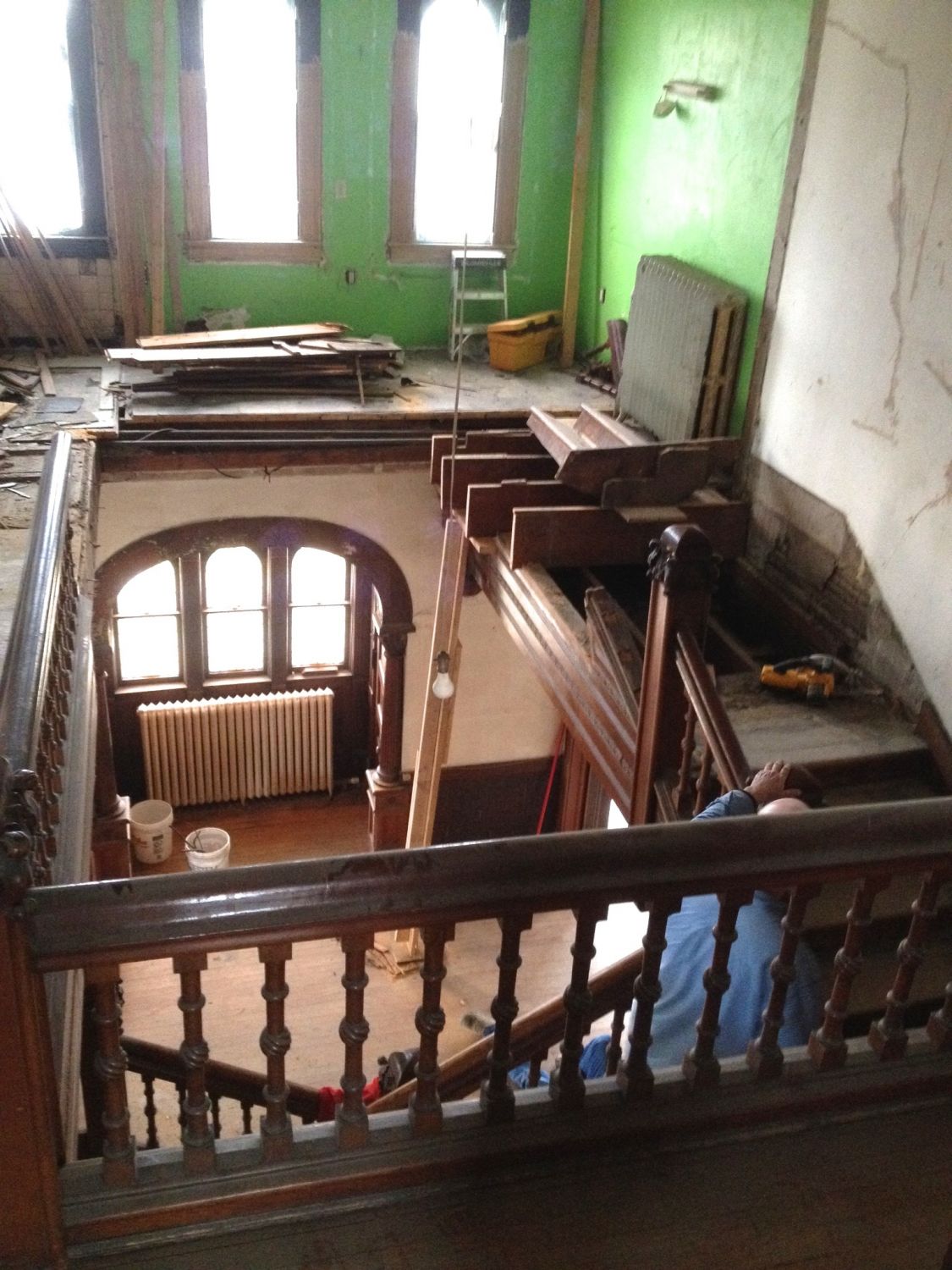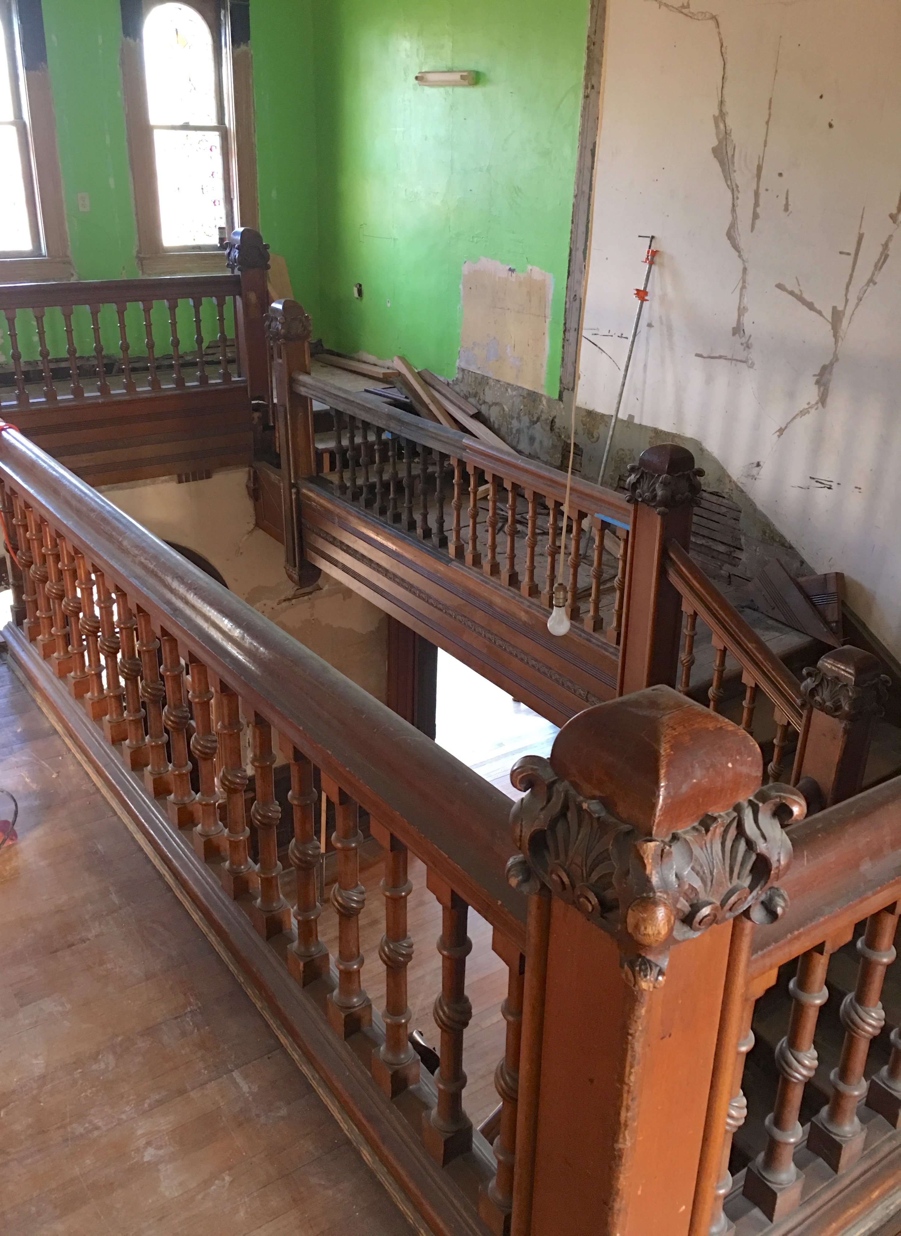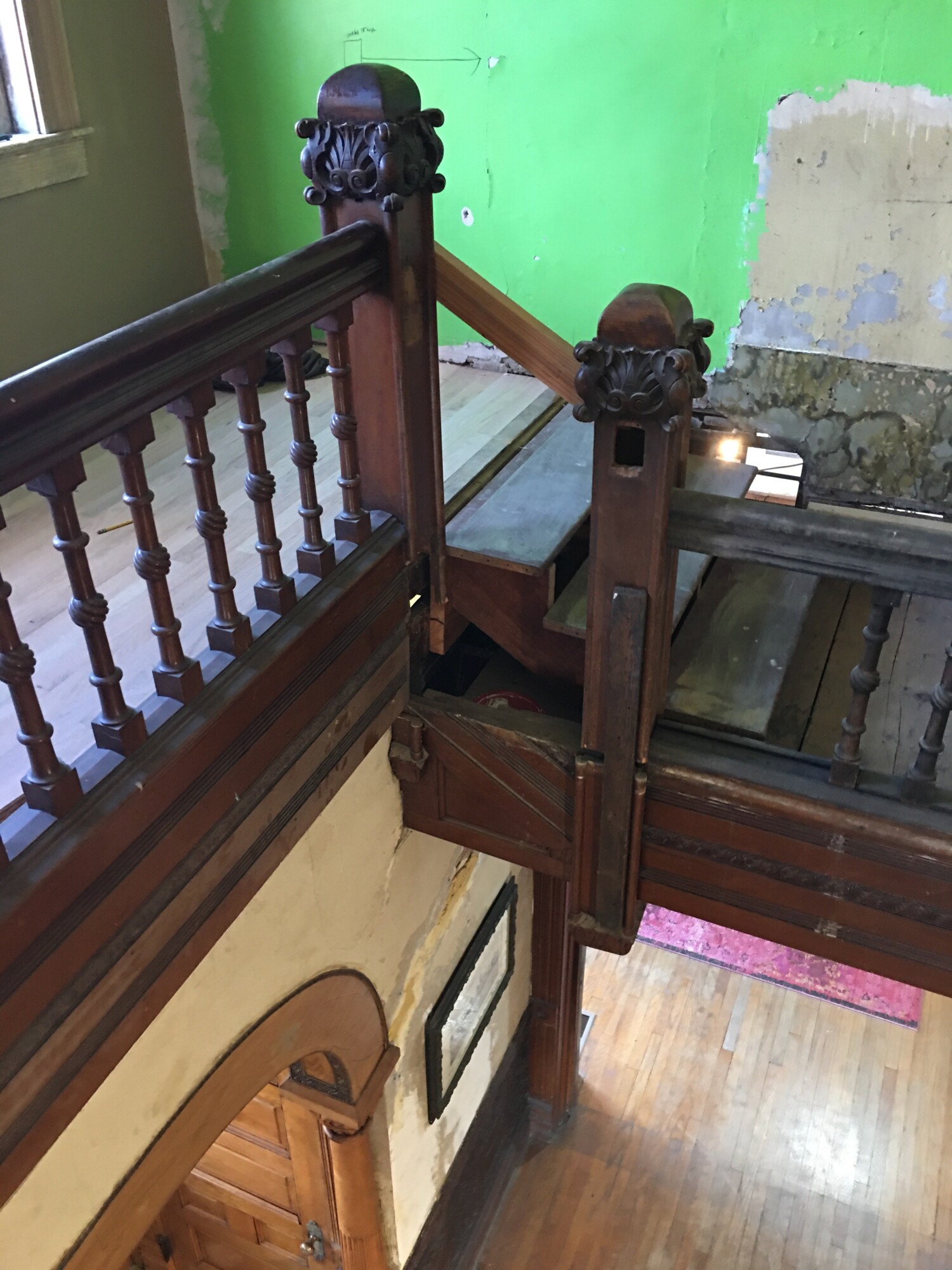 How wonderful that the staircase will be brought back to it’s former glory. What a difference with the added wall gone and three beautiful stained glass windows exposed. This is a major accomplishment.