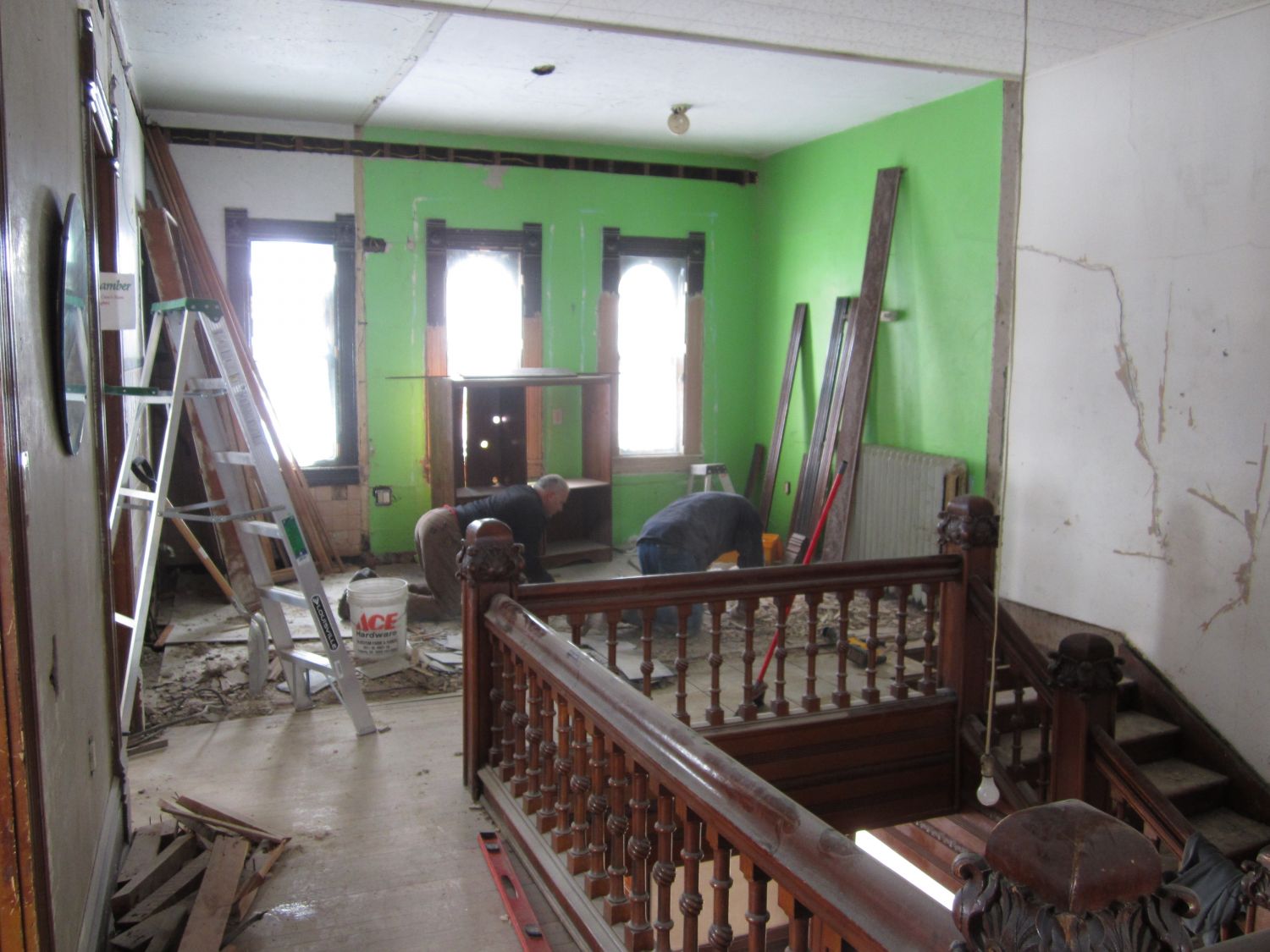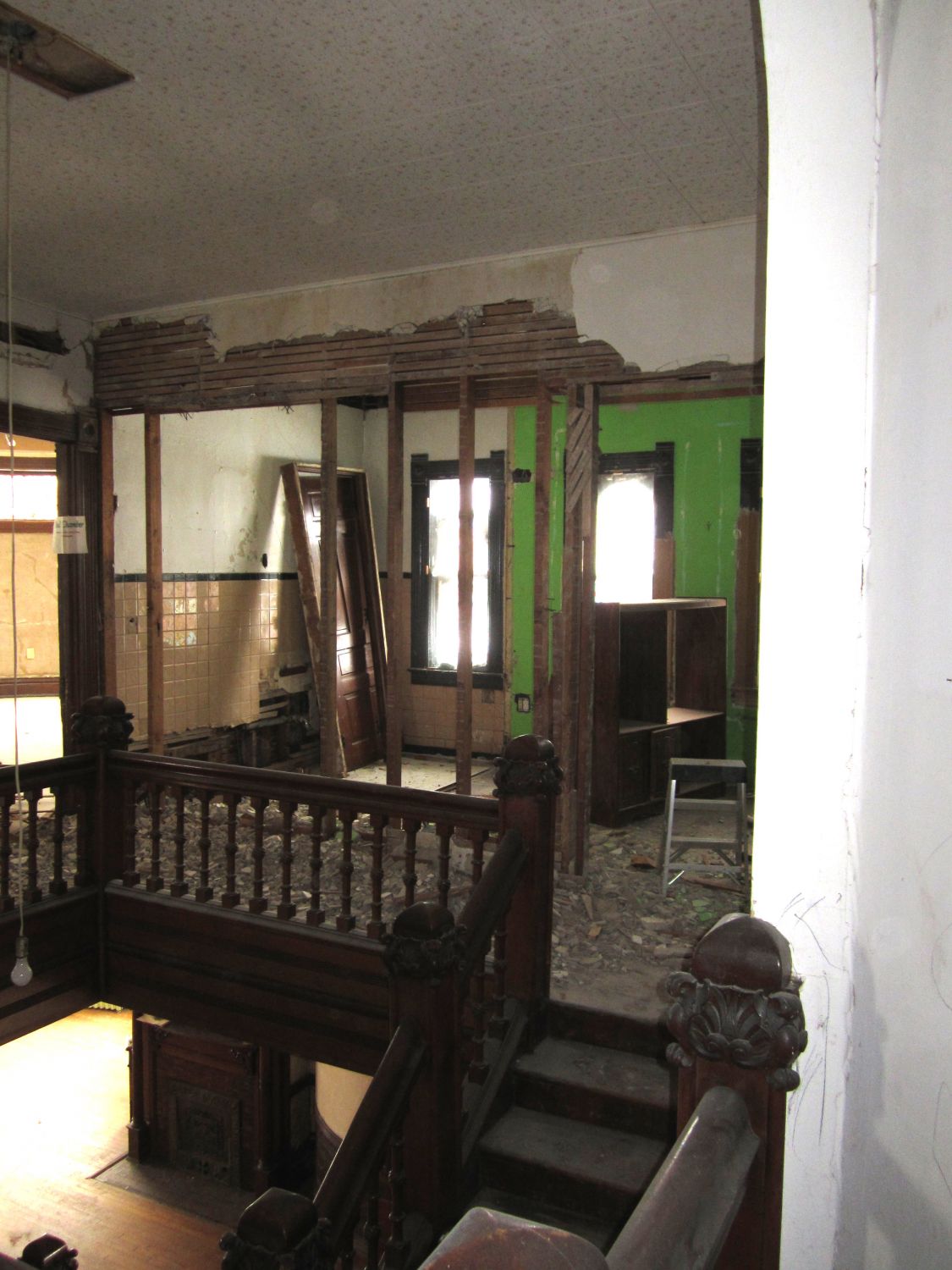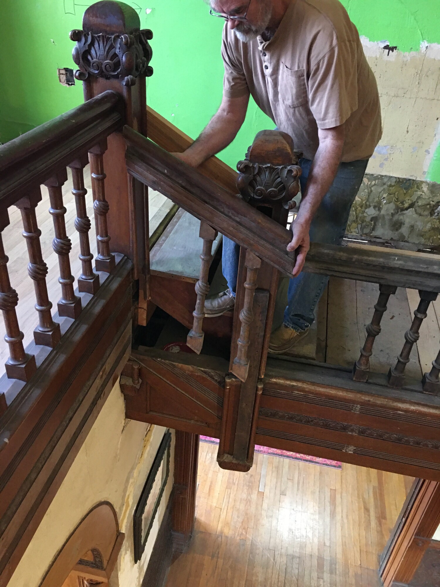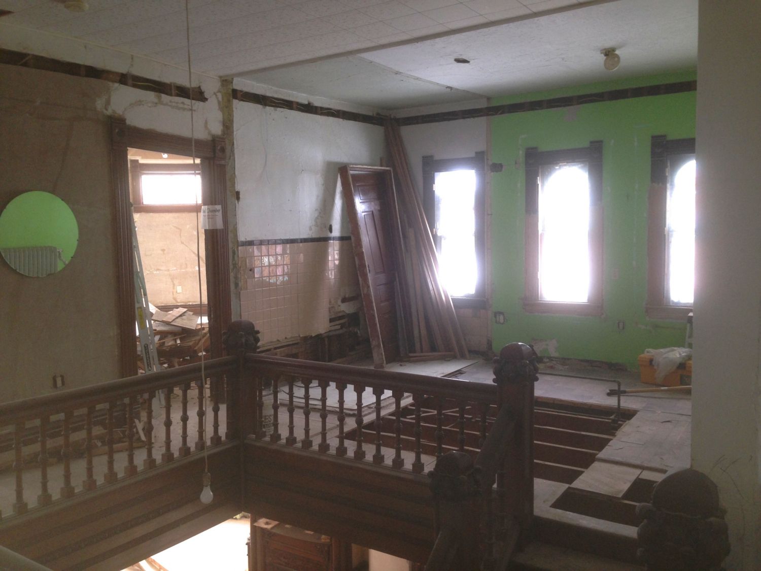 How wonderful that the staircase will be brought back to it’s former glory. What a difference with the added wall gone and three beautiful stained glass windows exposed. This is a major accomplishment.