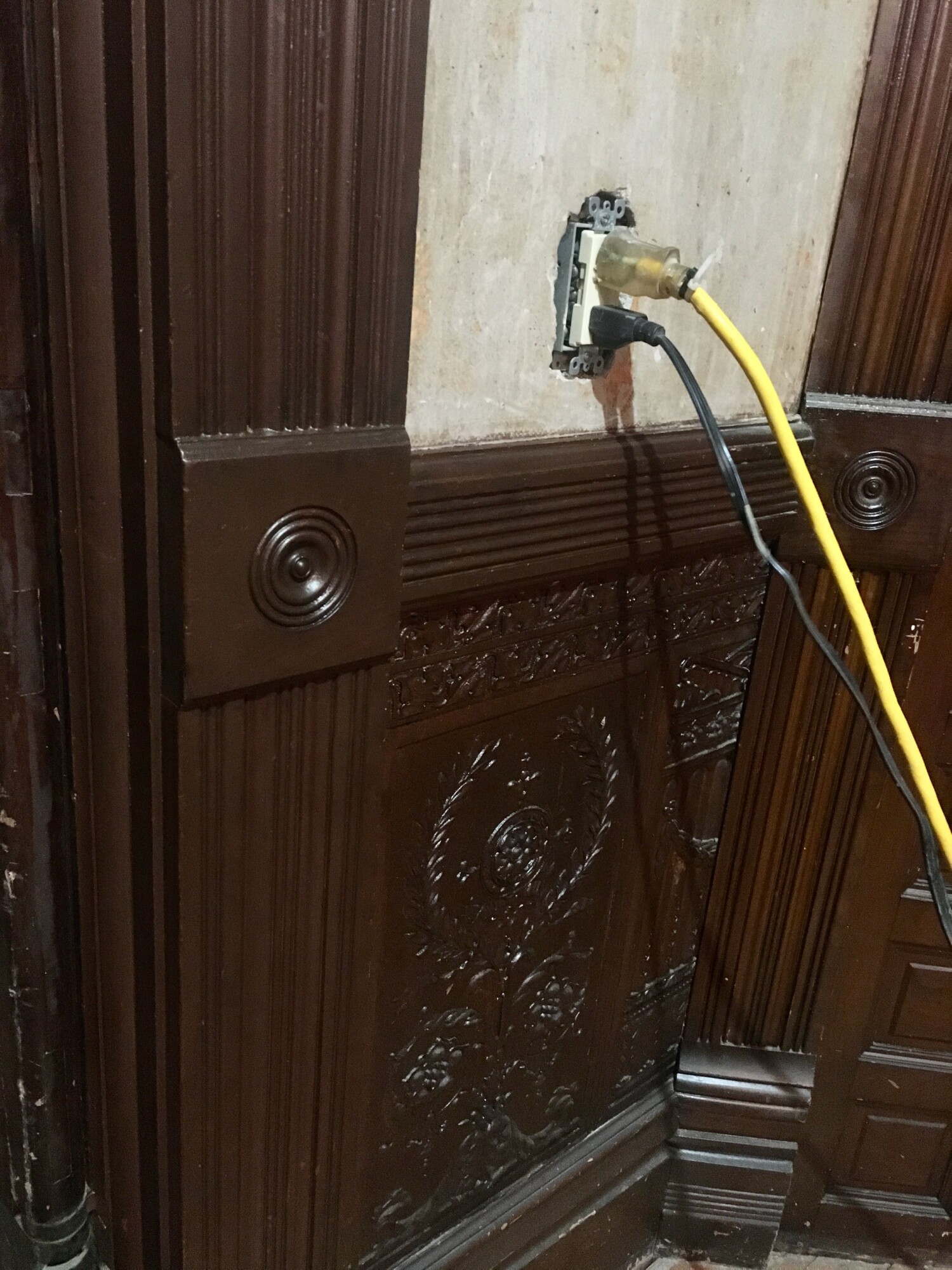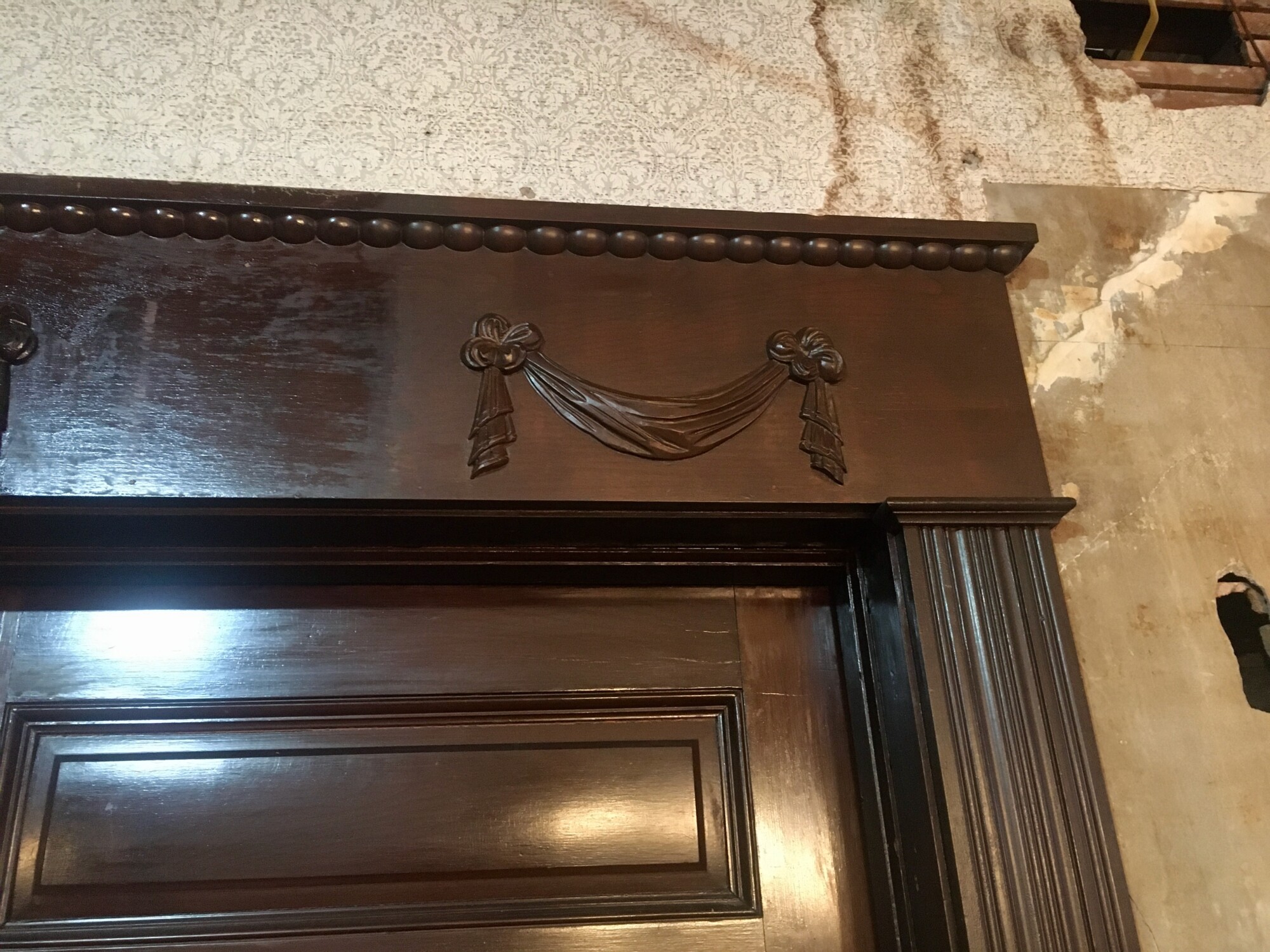 Moreover, it was a LOT of effort to remove the mystery layer on this one panel and I blanche at imagining the effort/time required to remove all the mystery finish in the room, and then restore the 1894 finish.