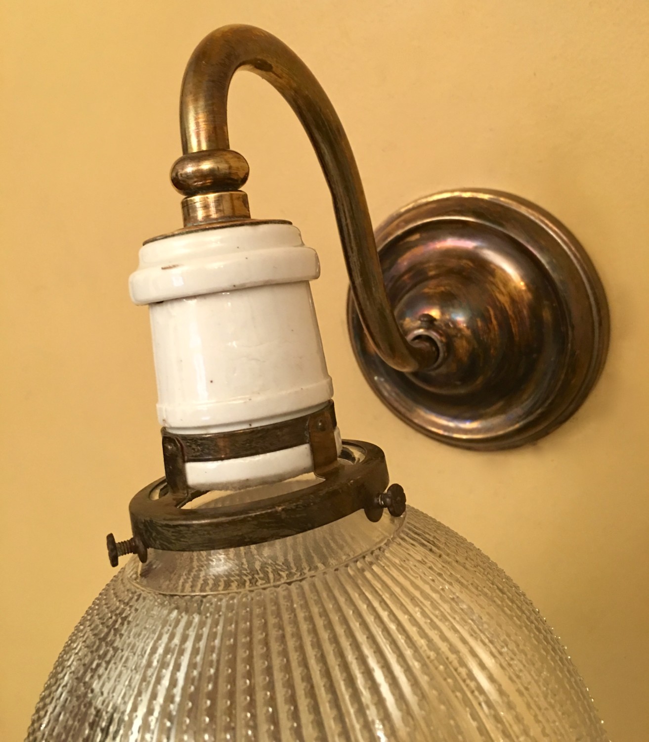 These are similar to two extant sconces in our 1913 home, except ours have brass sockets. I have not seen porcelain sockets in a sconce like this before. Very neat!