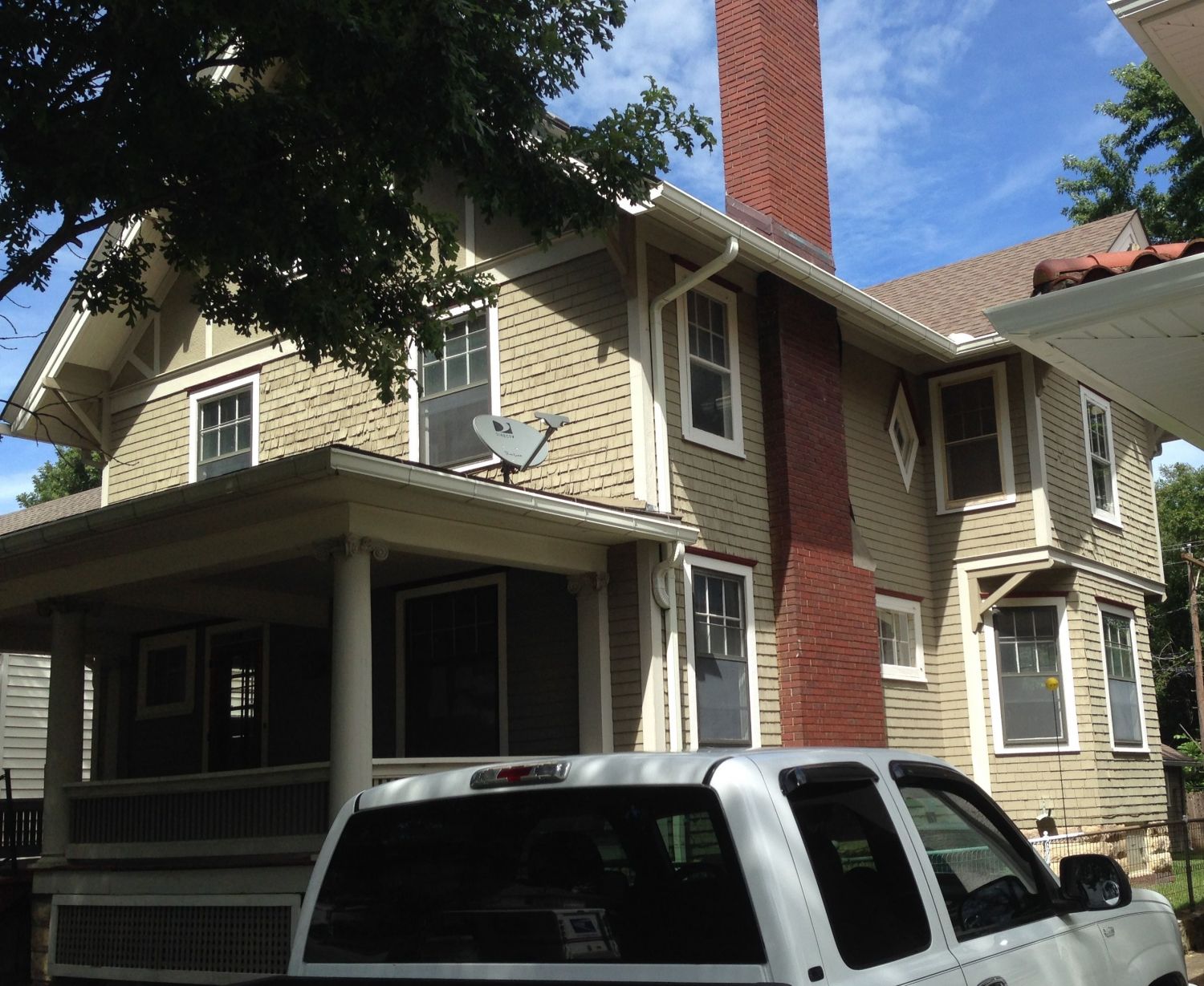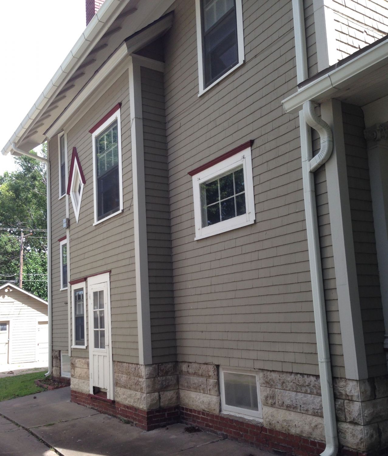I love the attic window and the X sashes. The middle one is missing, and I hope it is stored in the house somewhere.