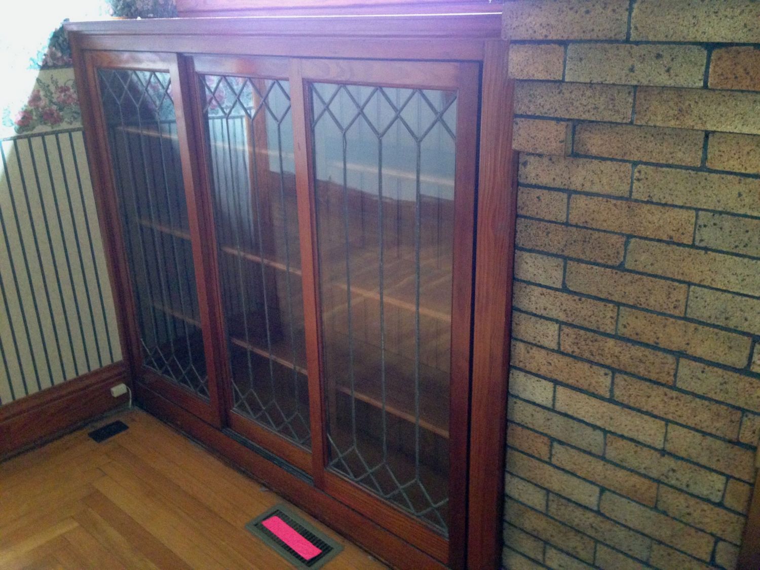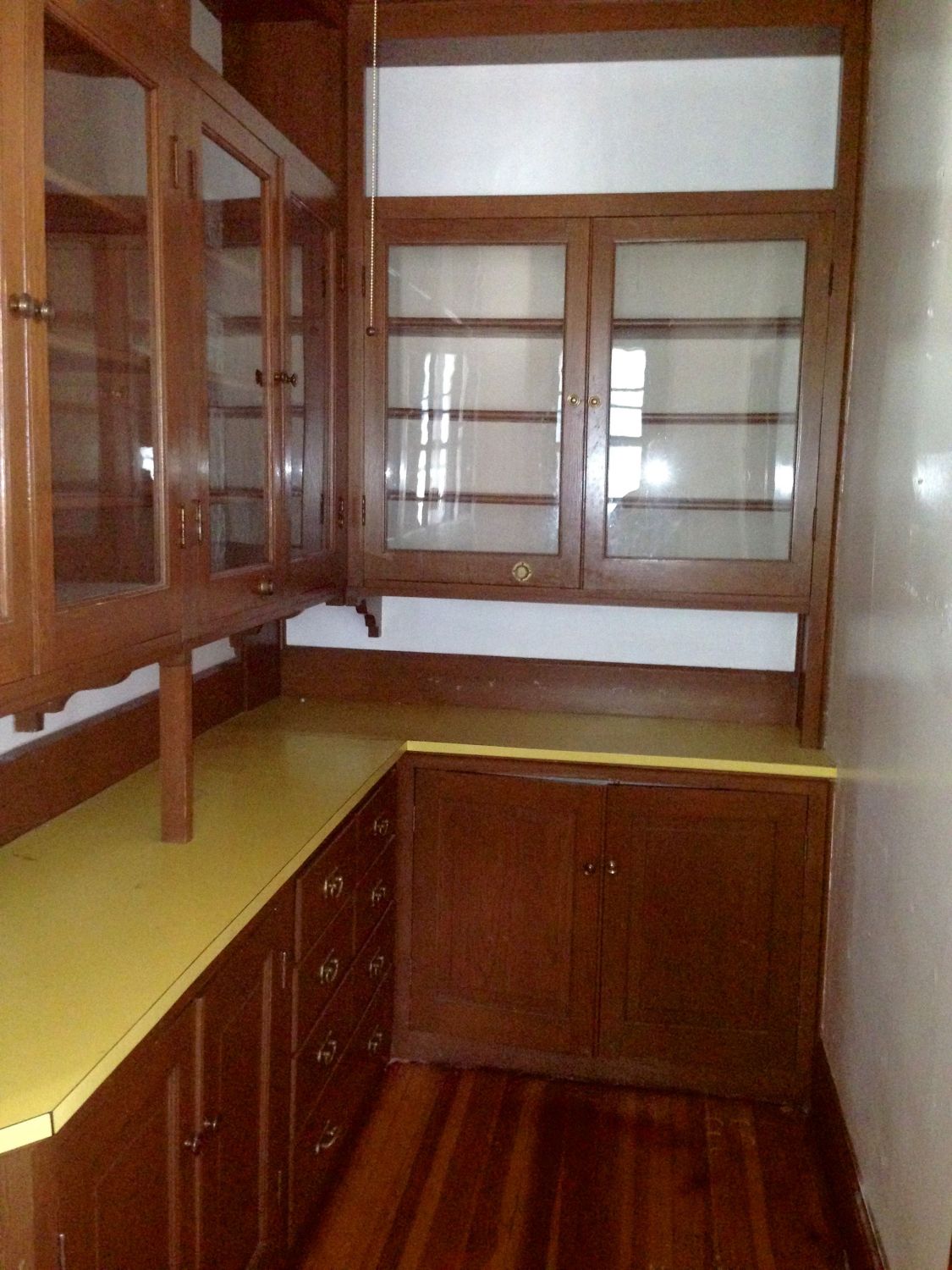 There is a butler’s pantry with original cabinets!