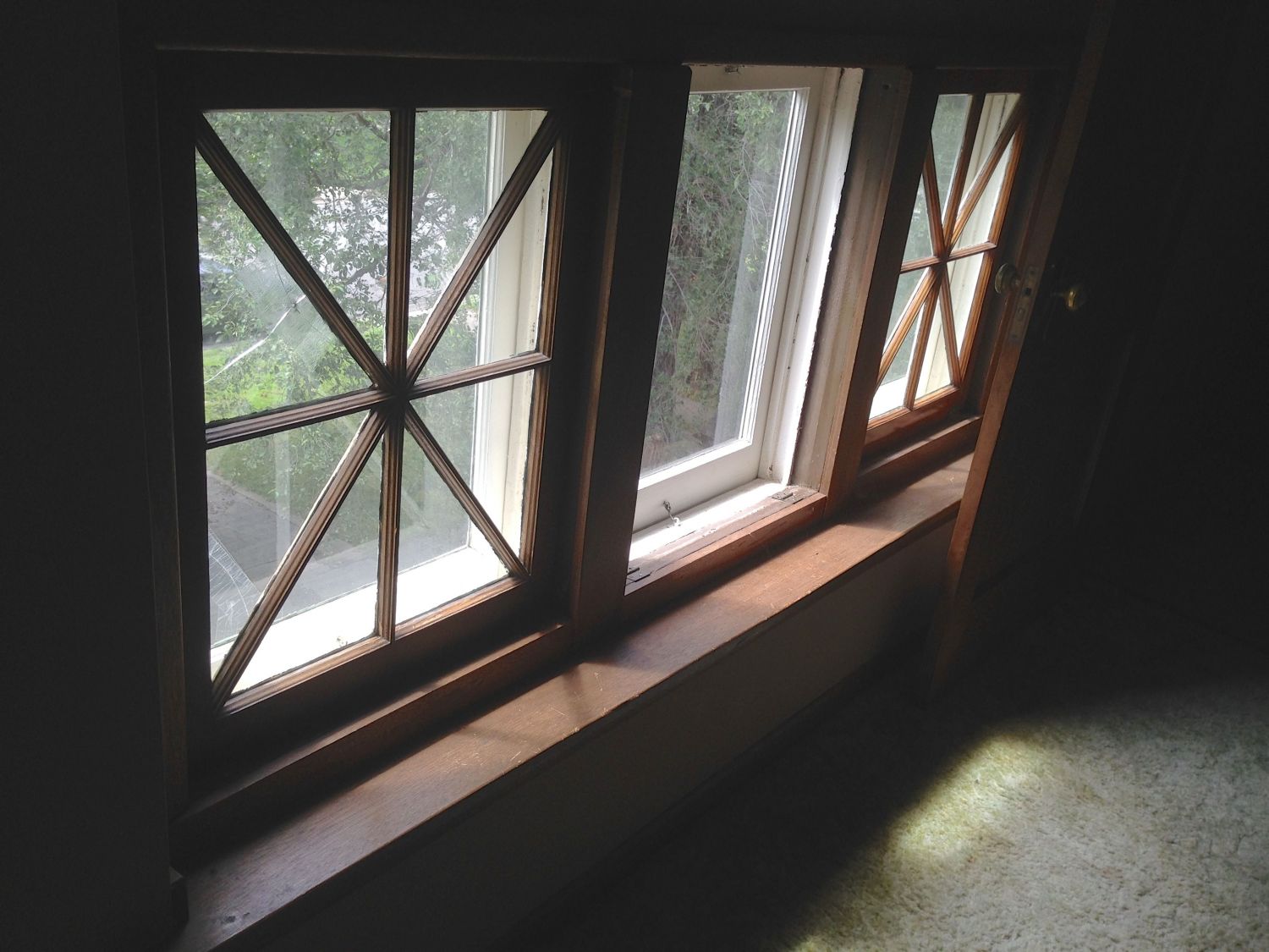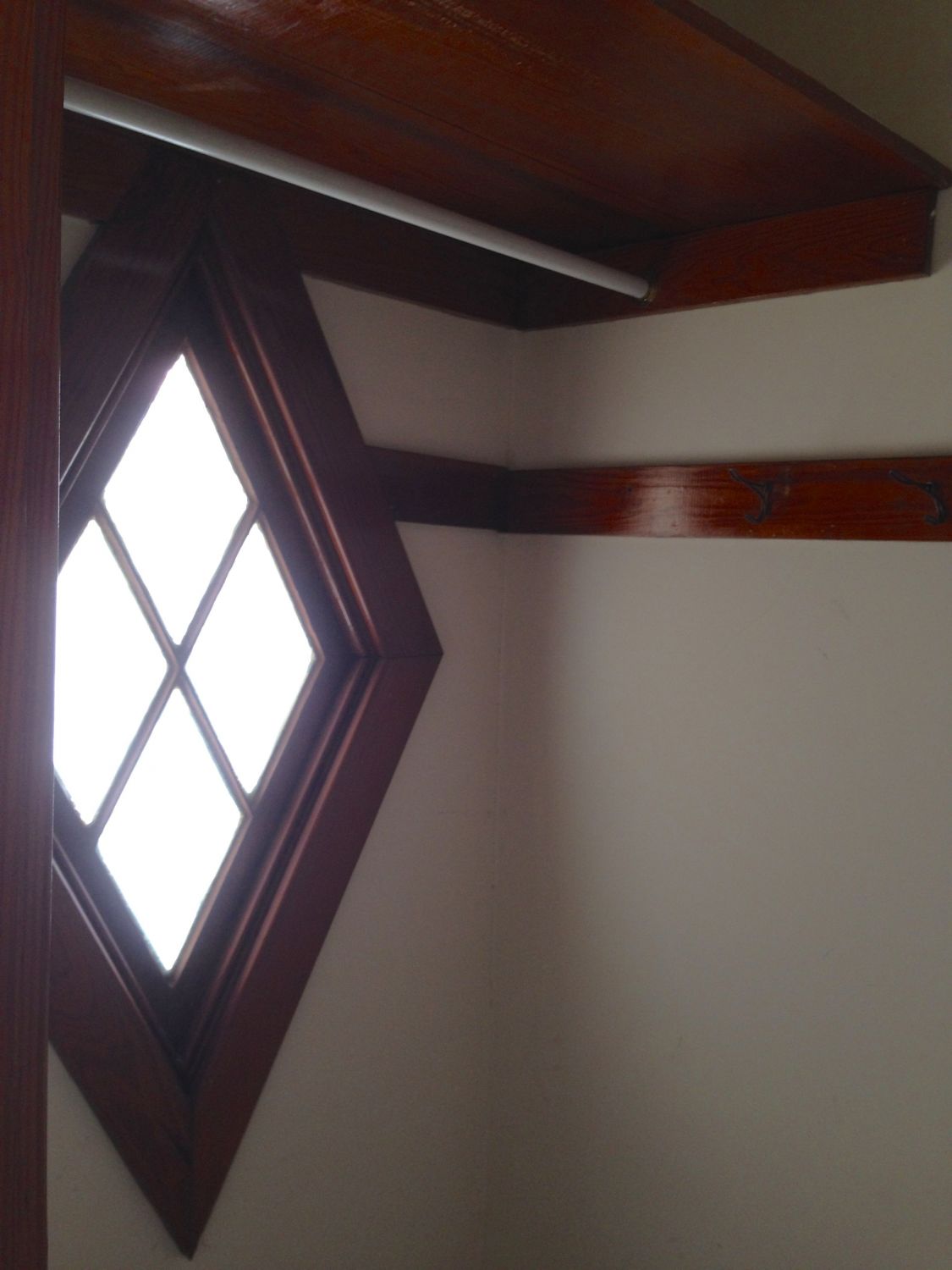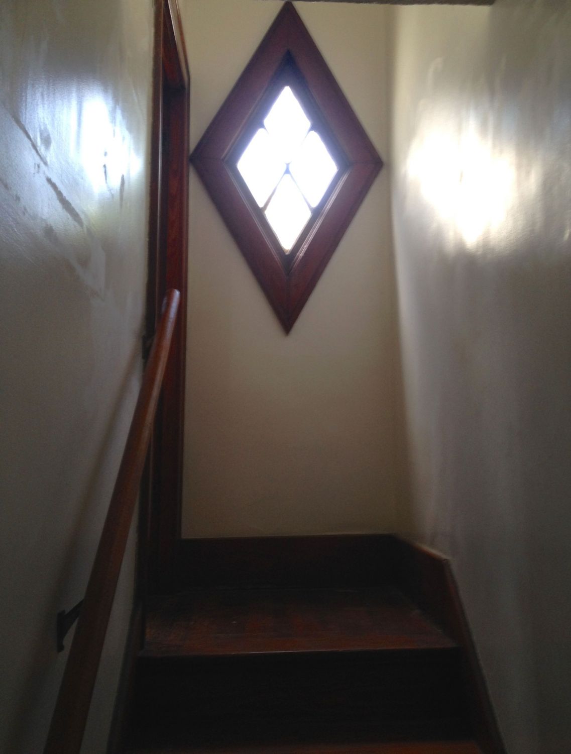 There is servant’s half-stair off the kitchen, which has a delightful shock: an incredible diamond window!!!!!