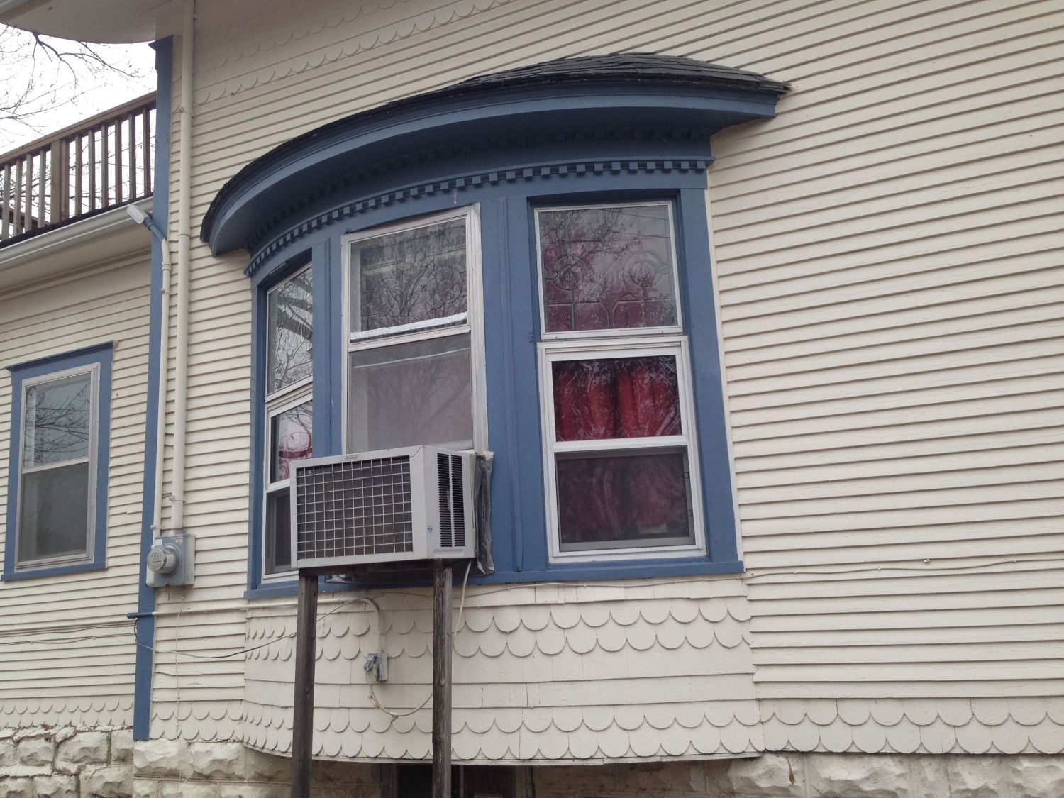 ABOVE: Additional Squires signatures include the lap-siding on the first floor, and shingles above (alternating between straight and rounded shingles, as on the Cross House). Note also the curved bay. Squires loved a curve.