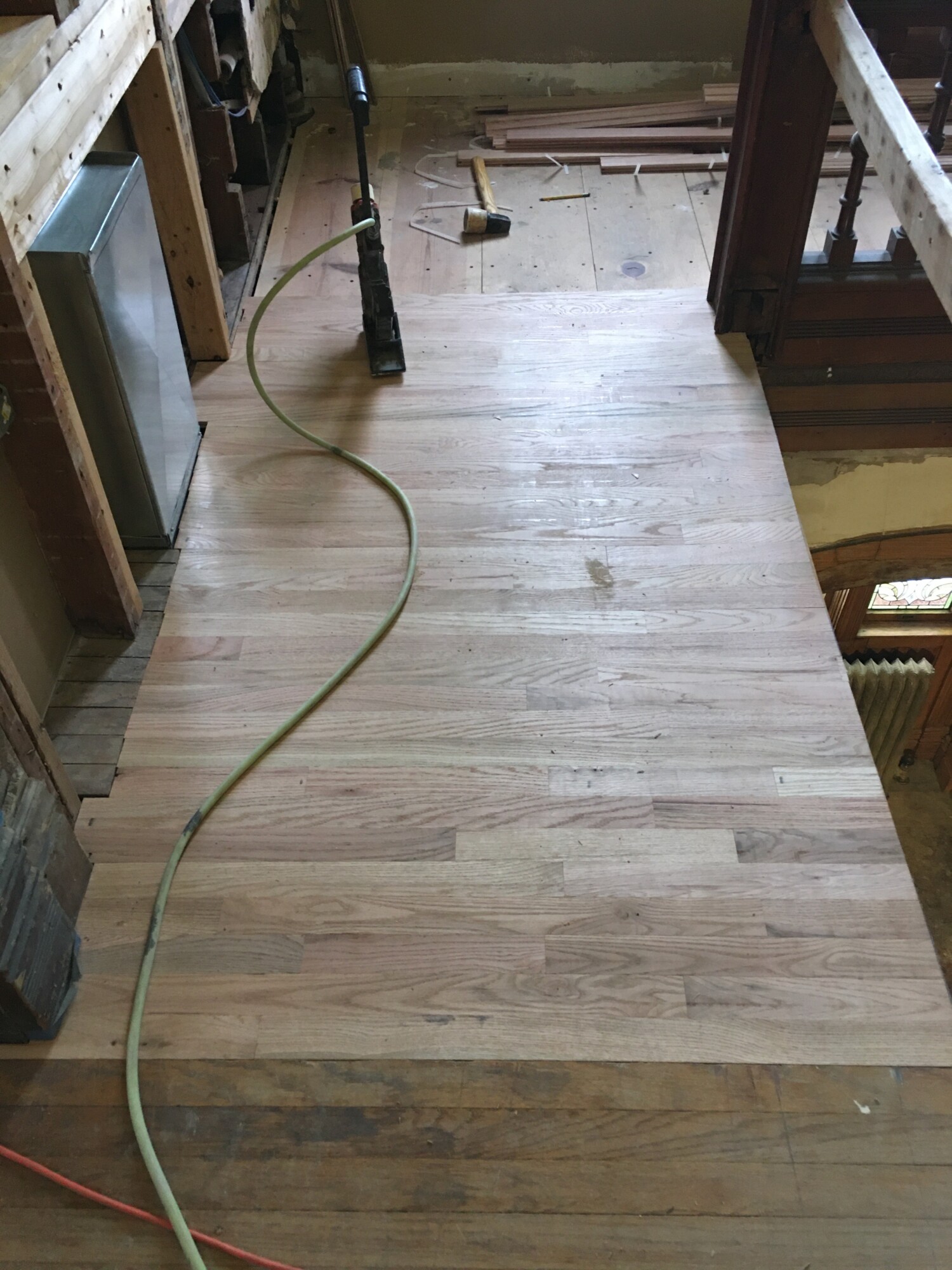 It will be a while before The Other Justin sands the flooring on the second level, and then stains and varnishes. But…already the house feels SO MUCH BETTER. Evidence of the house being damaged has been erased. Scar tissue has been erased.