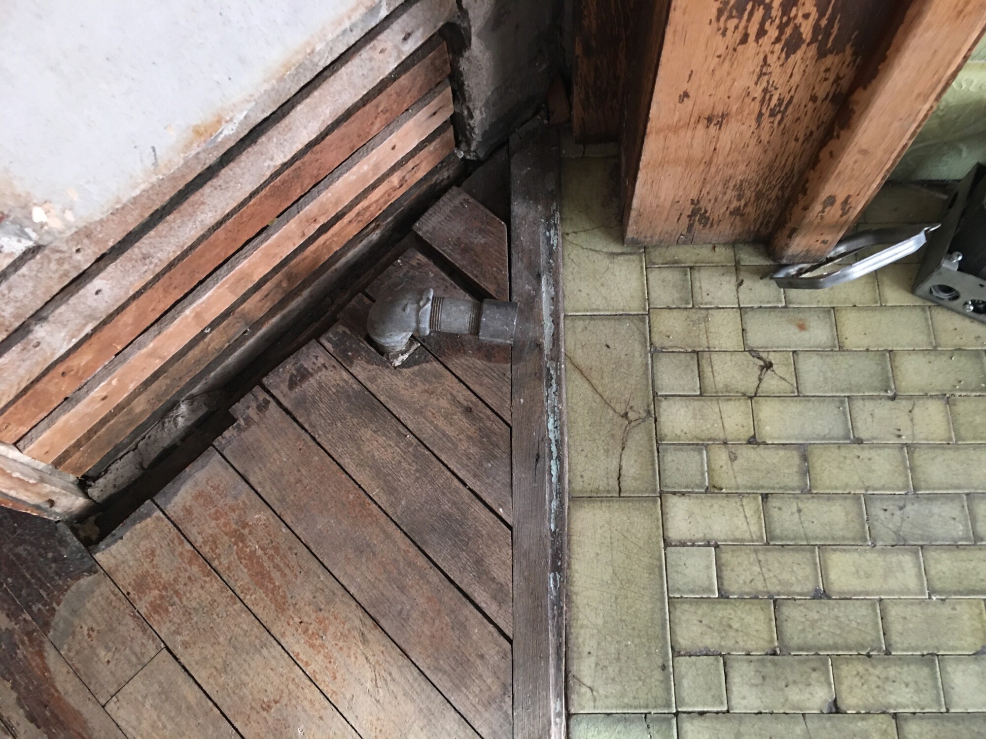 SERVANT’S ROOM. About 2/3 of the (I think) 1929 oak flooring had to be pulled up. It was heavily damaged.