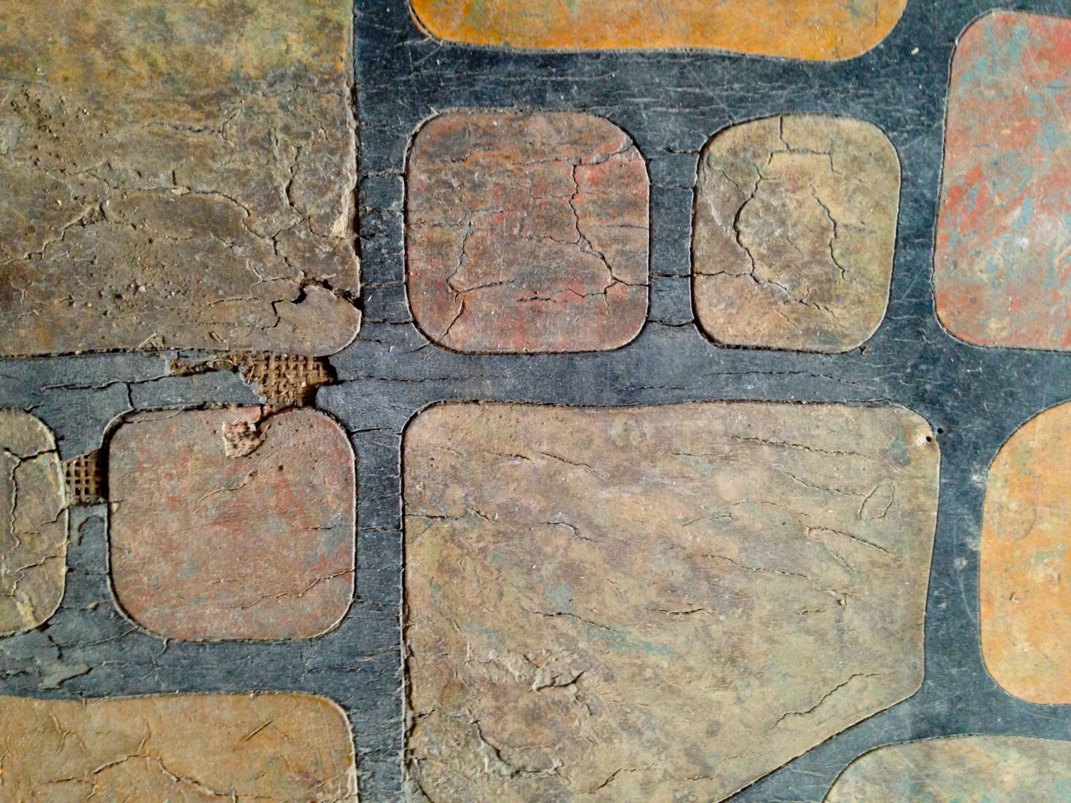 ABOVE: The very first layer of linoleum in the kitchen of the Cross House, resting atop the 1894 maple flooring.