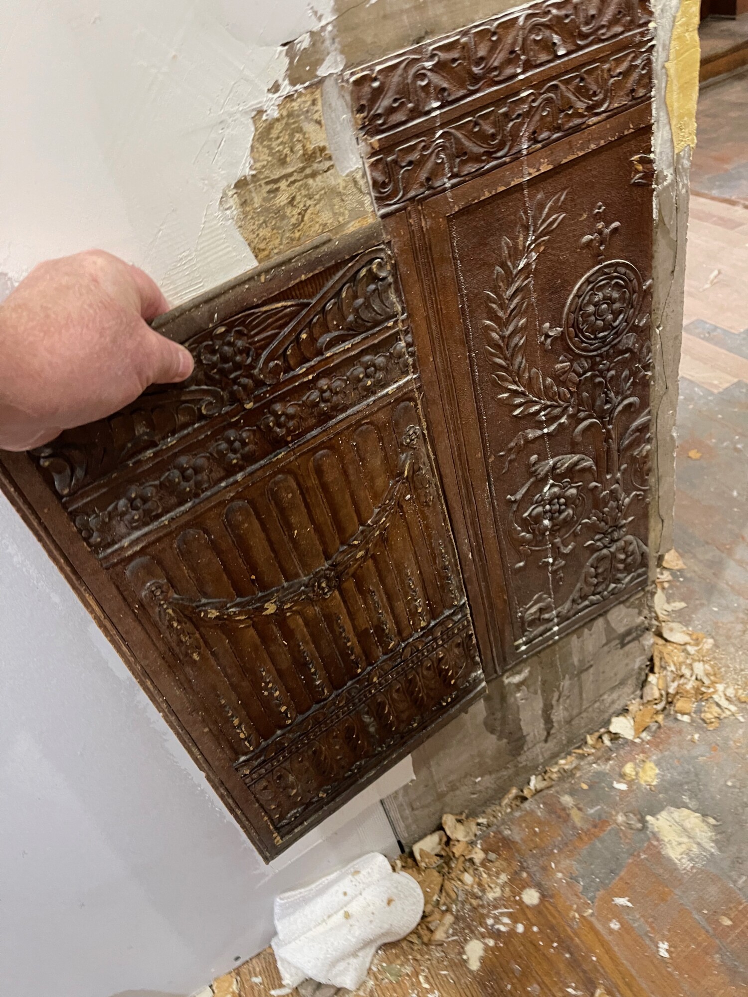 Ross, out of curiosity, I just goggled Lincrusta and its history. How did you get it off, and better yet, how will you get to stay back on??