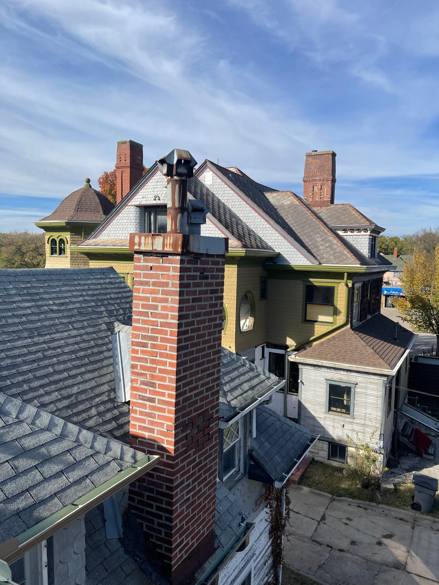 And even if I could scale the lower roof to reach the chimney, how could I get up the main roof to take the chimney down?