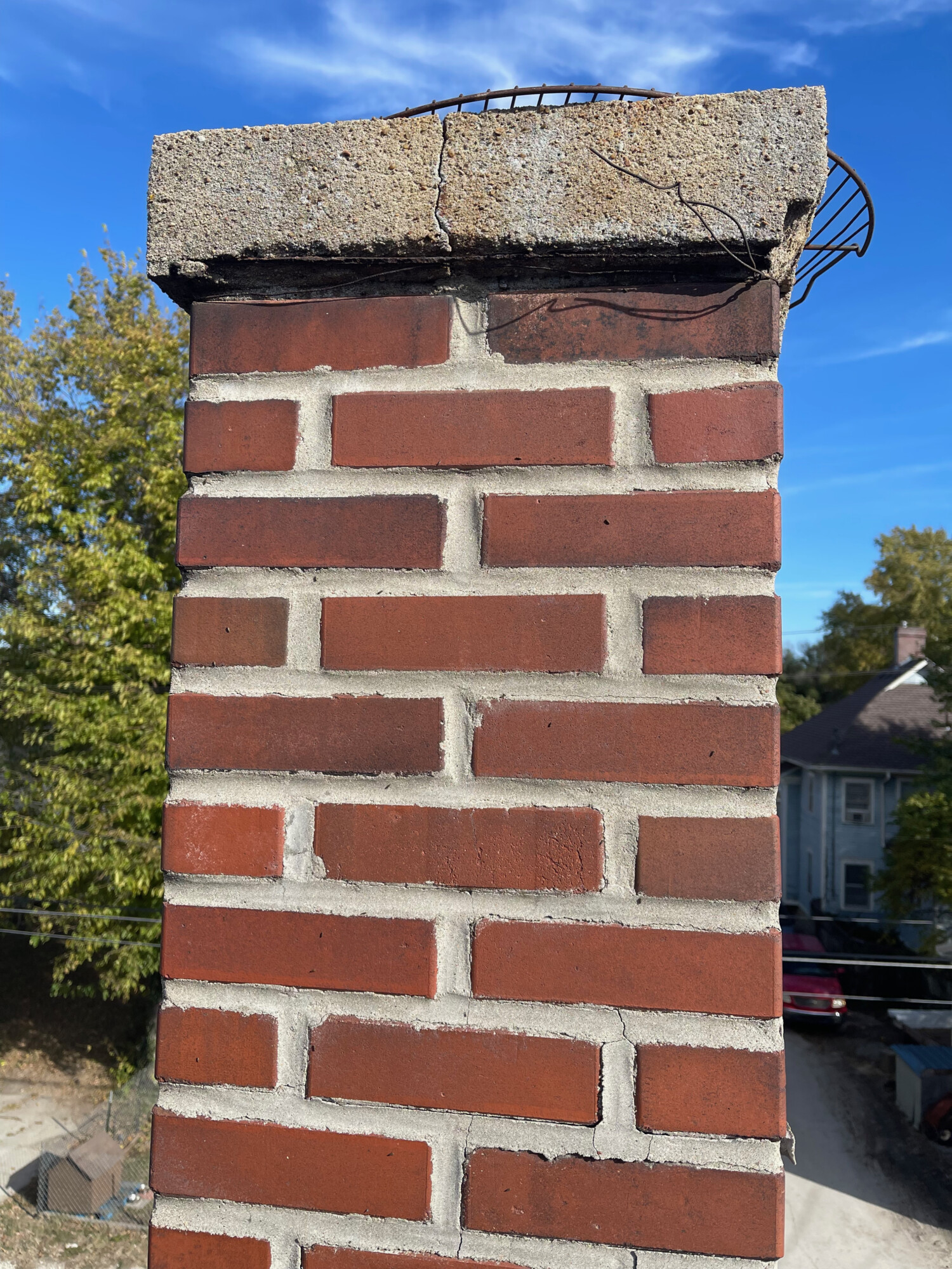 Even more importantly, the mortar was crumbling, and the chimney was leaning. At some point, in a very strong wind, it would have come crashing down.