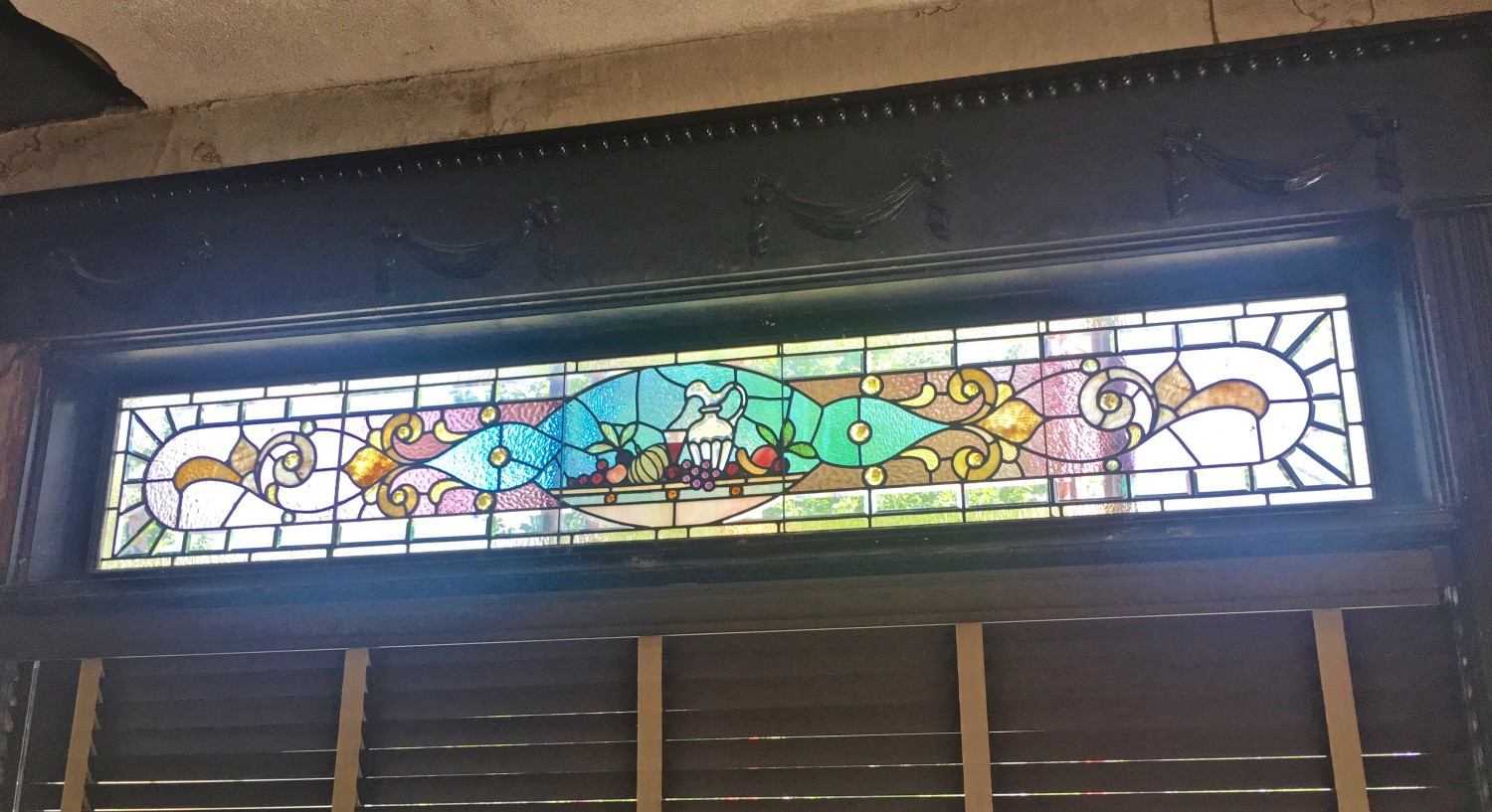 Today, I got the very wide center stained-glass panel back in place. Fully restored and in a restored wood sash. The panel is like 8-feet wide.