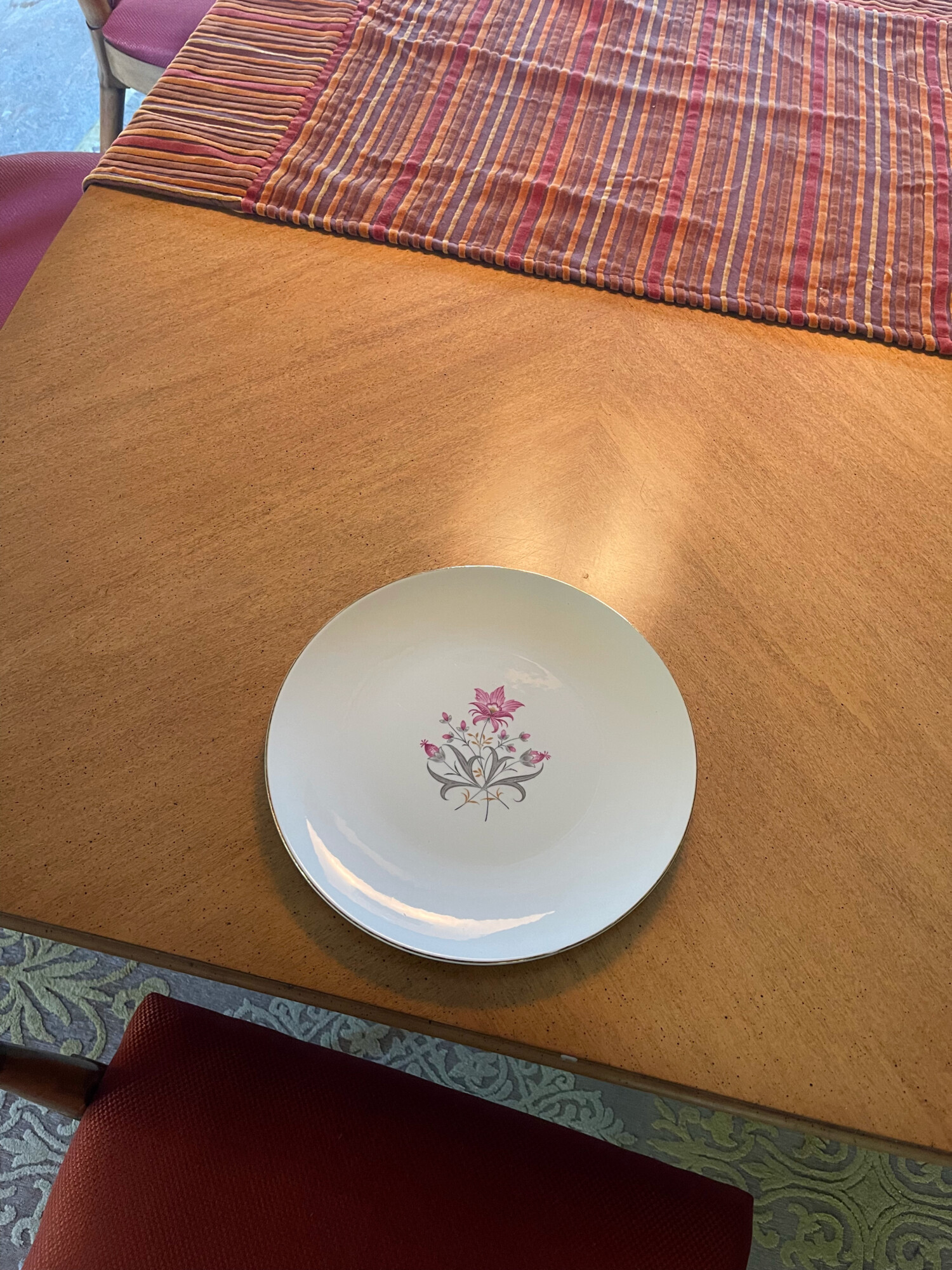 Everything is coming together nicely, even the china matches the dark red of the chair upholstery. Great job, it’s fun to go shopping in the inventory you already own.