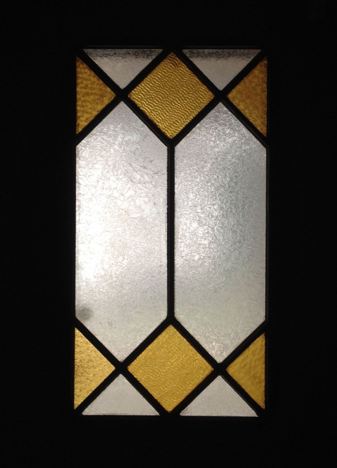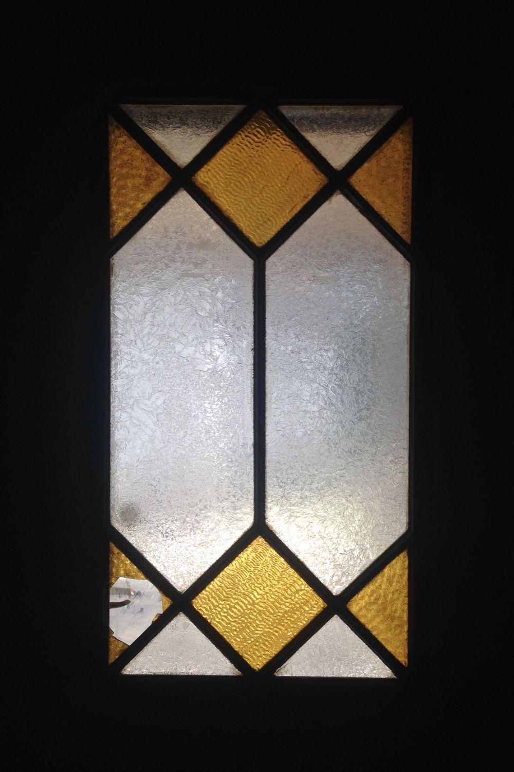 The upper part of the south door is glass, in two colors, and three textures. Kinda cool. The glass all seems original.