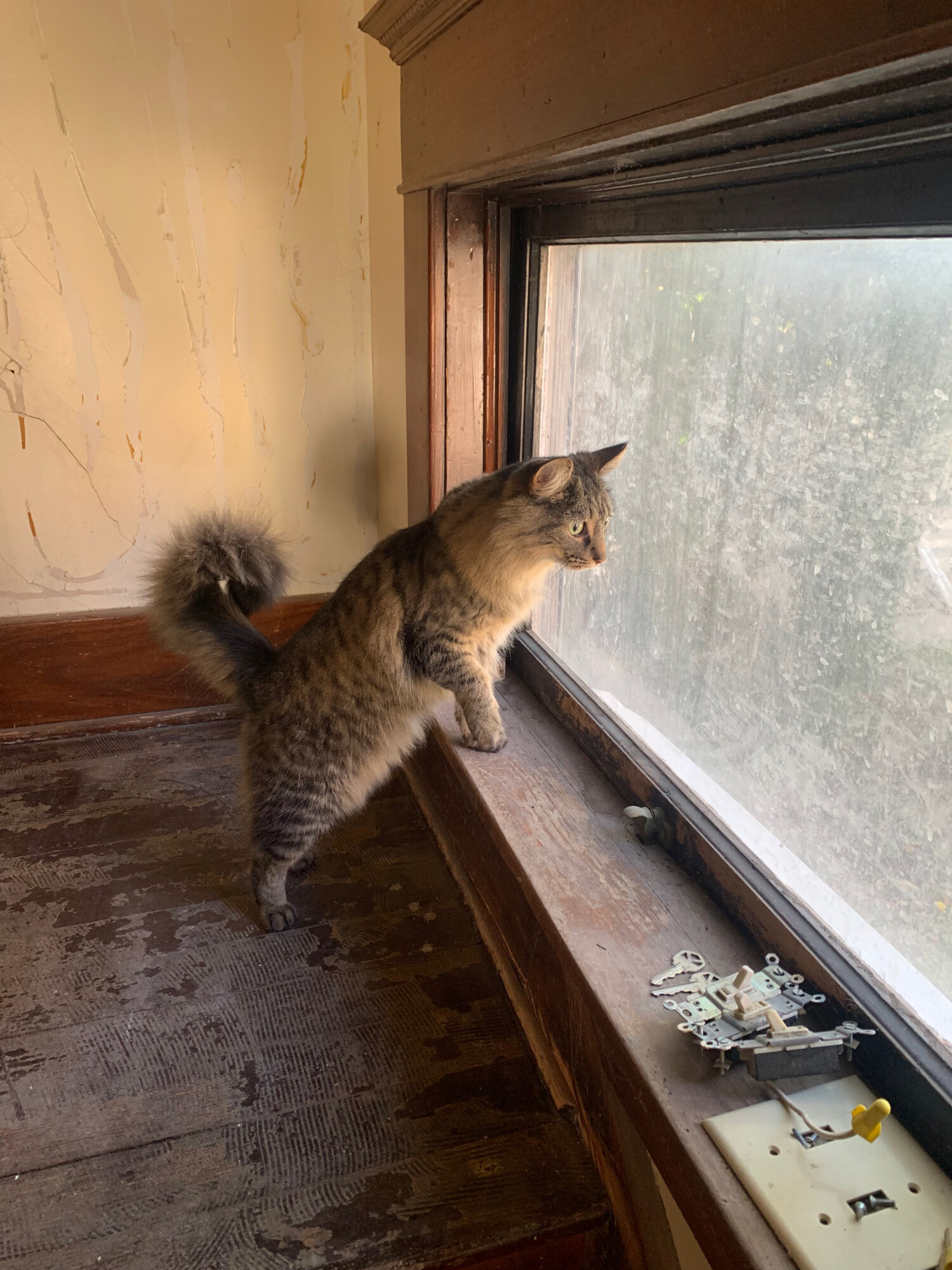 Pretty cat, such a fluffy curled up tail. I’m sure he’ll be spending a lot of time in that window.