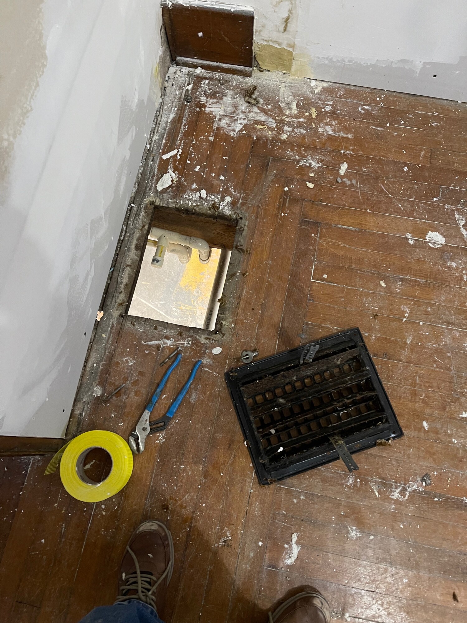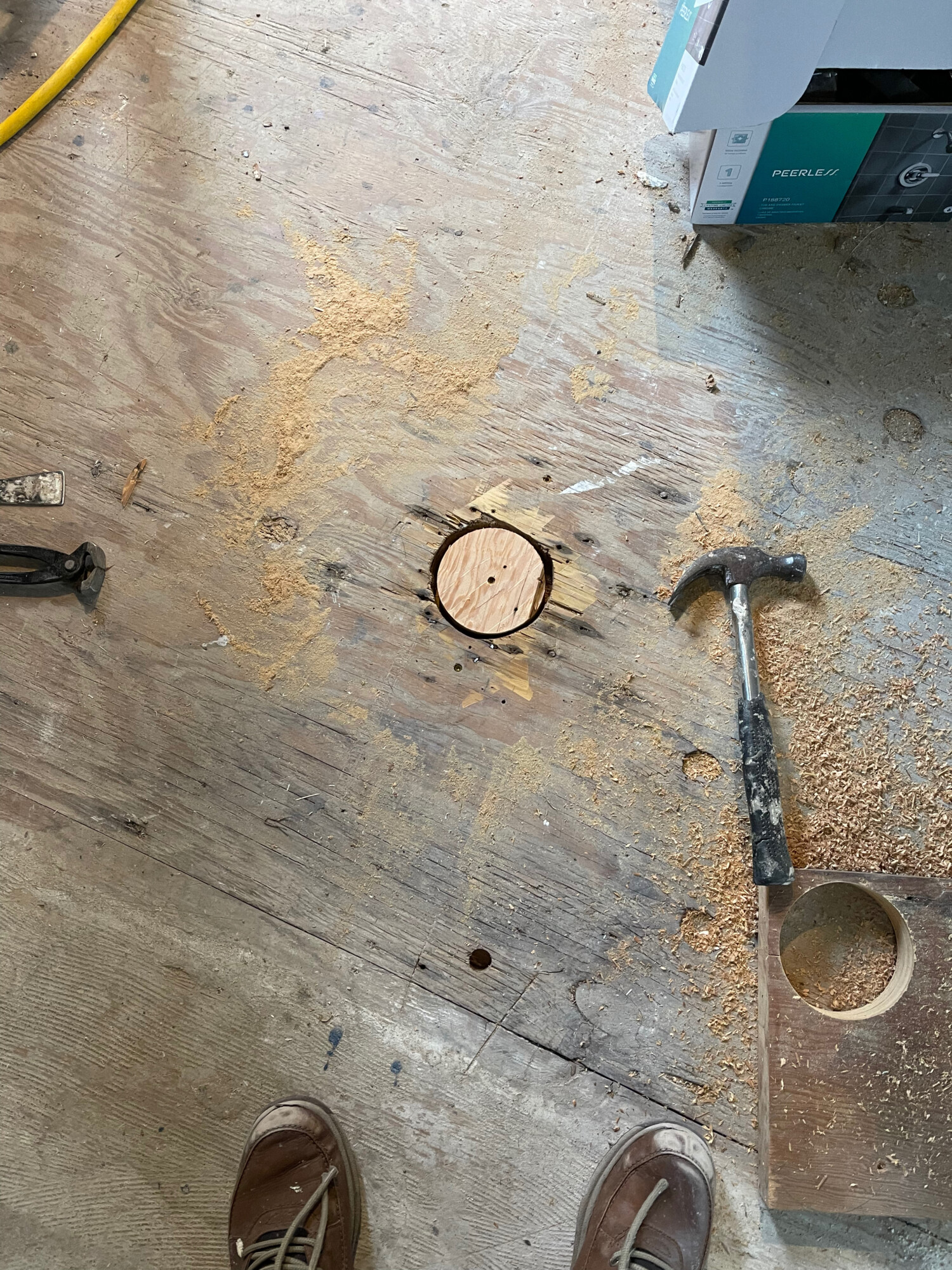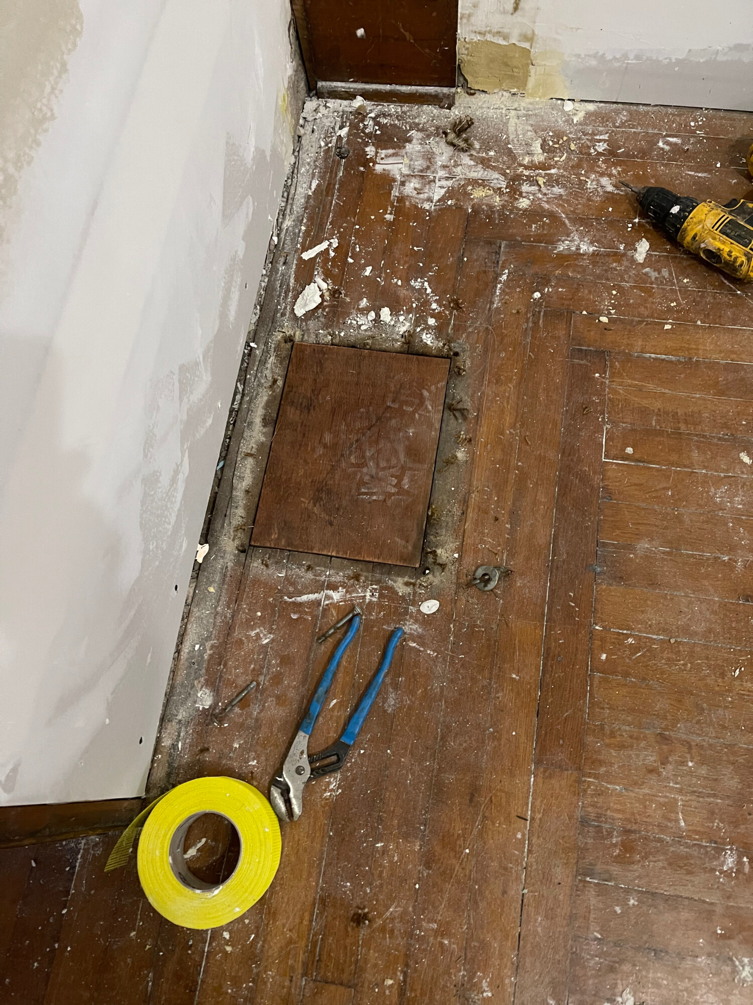 To assure that Cody will be super-duper safe from angry and ferocious plenum dwellers, I infilled the hole. Later, oak will properly infill this, demons be damned.