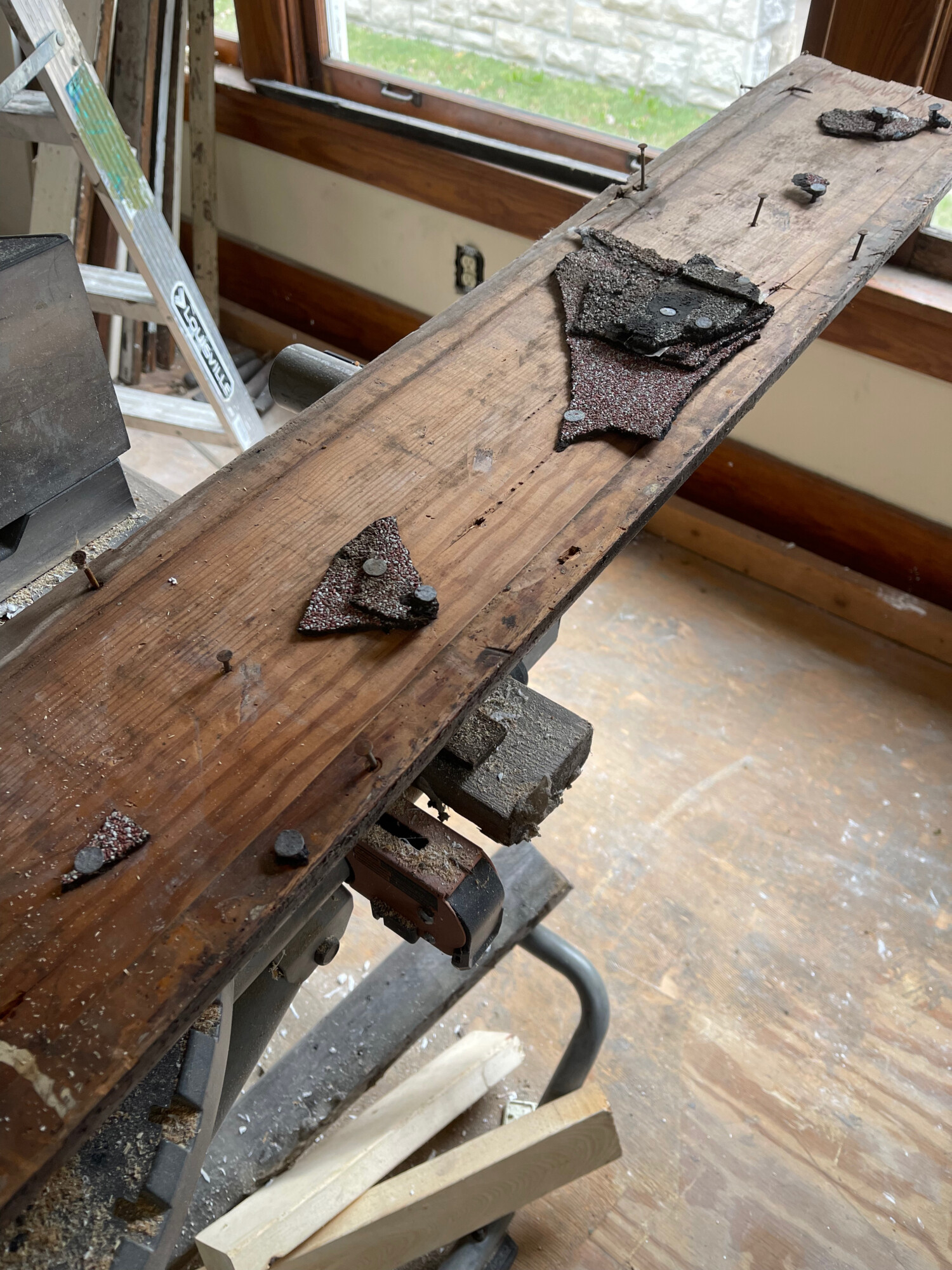When I tore down a small addition off the kitchen in 2014, two roof sheathing boards captured my special attention. They were clearly old-growth pine, and seemed WAY too nice to be sheathing boards. So, I stored them away. With all the nails and old asphalt roofing removed, and turned over…