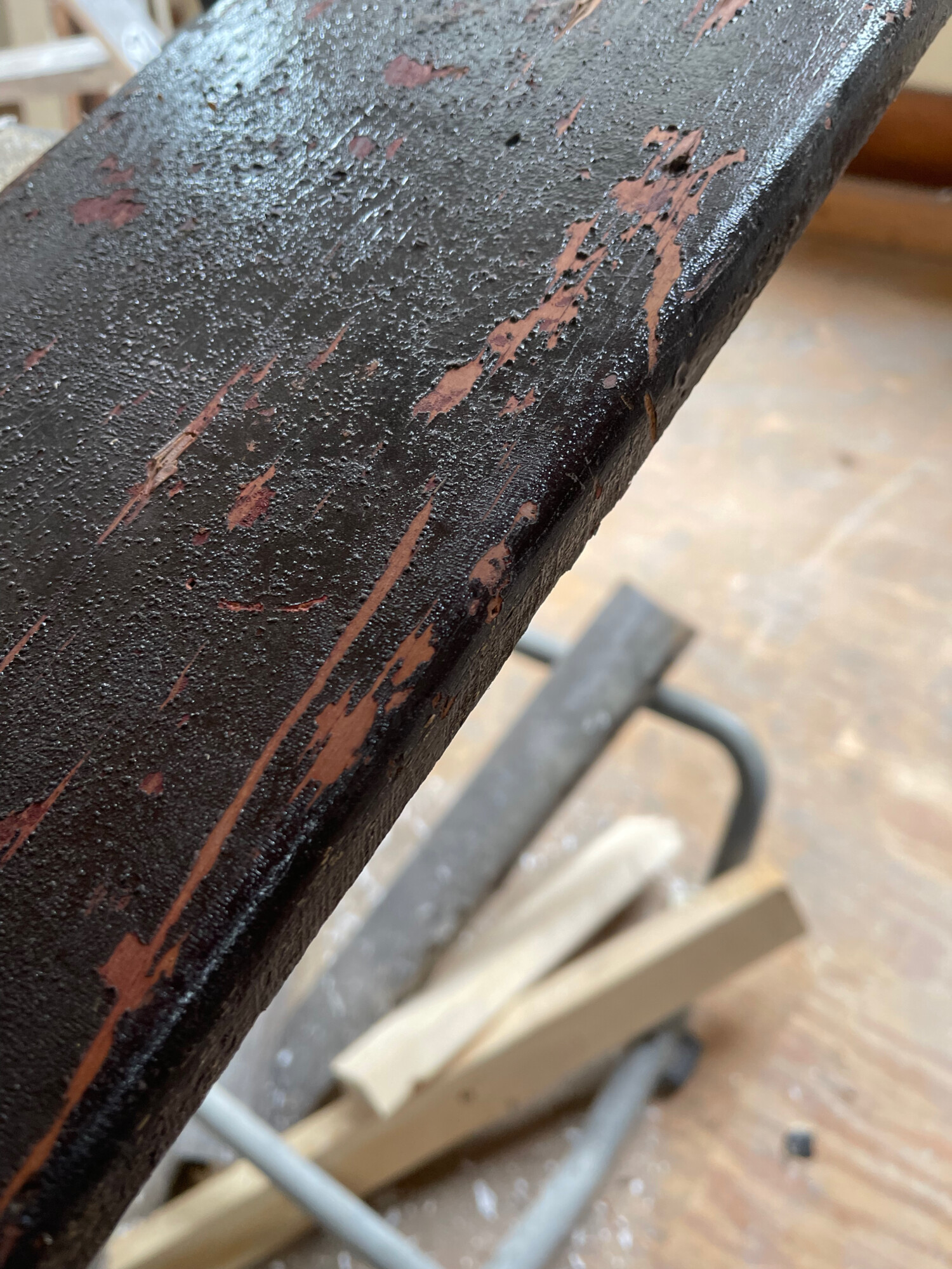 …each long board (about ten-feet-long) turned out to be original pine base molding to the house. That dark finish is just old shellac. They will clean up well and prove invaluable. 1, 2, 3: SQUEE!!!!!!!!