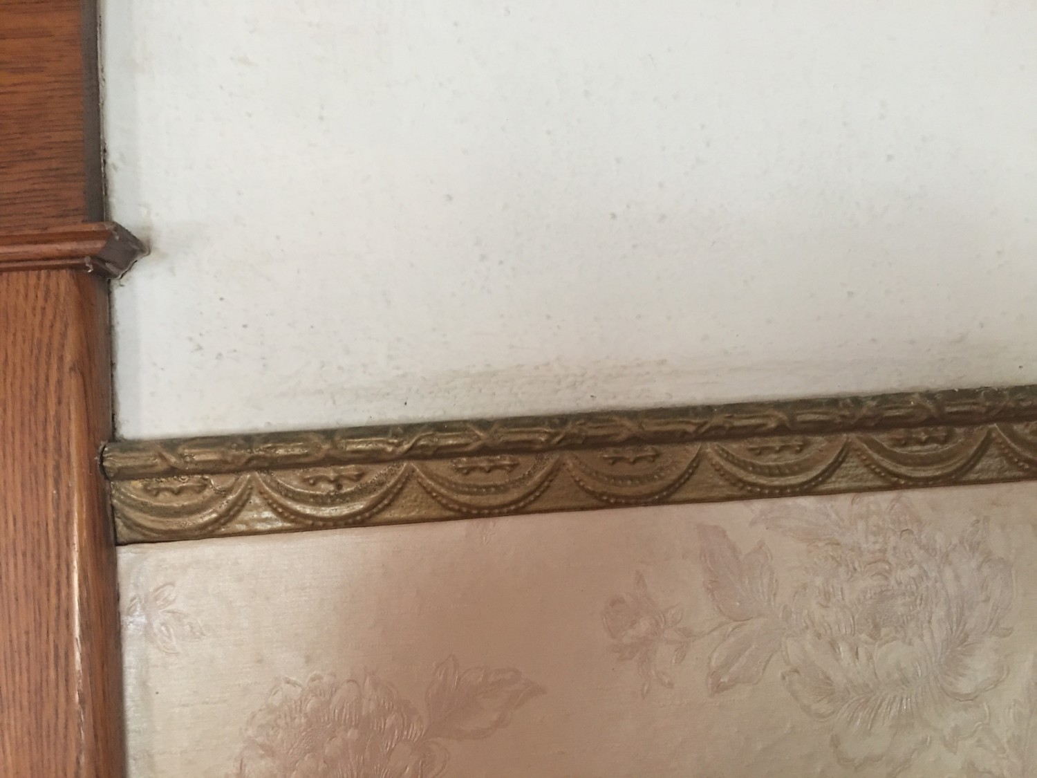 Generally, the “blended” rails with the fading colors were coordinated I think with the popular blended wallpaper friezes of the time, where the background color faded to the lighter ceiling paper color by the top of the wall. So little survives though that it is hard to know the typical uses for certain. And I have no doubt that straight gilt or antique gold was a more popular choice than the blended rails, which only worked with very specific papers (most papers had metallic golds in them so that made matching easy).