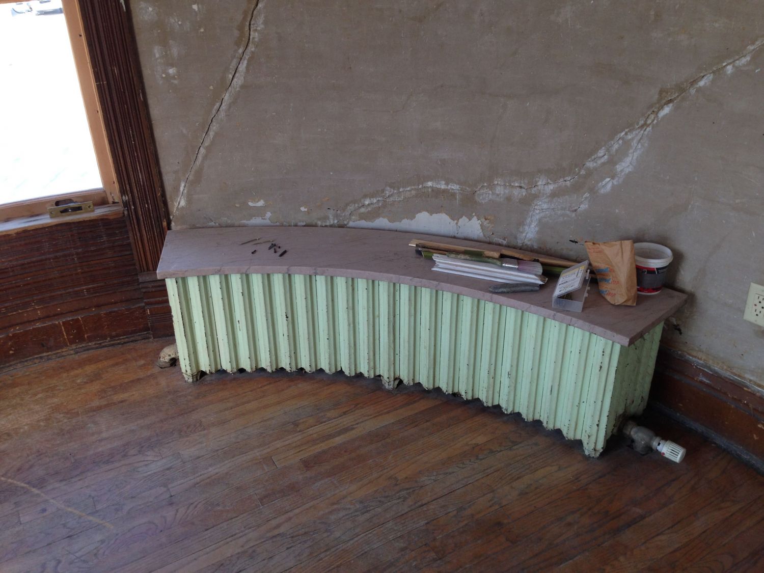 All the radiators in the house were originally topped with Tennessee marble tops. Most of these tops are extant; those lost over time will be recreated. On the radiators which are not tall, these marble tops are delicious-beyond-imagining to sit your butt upon in the cold winter.