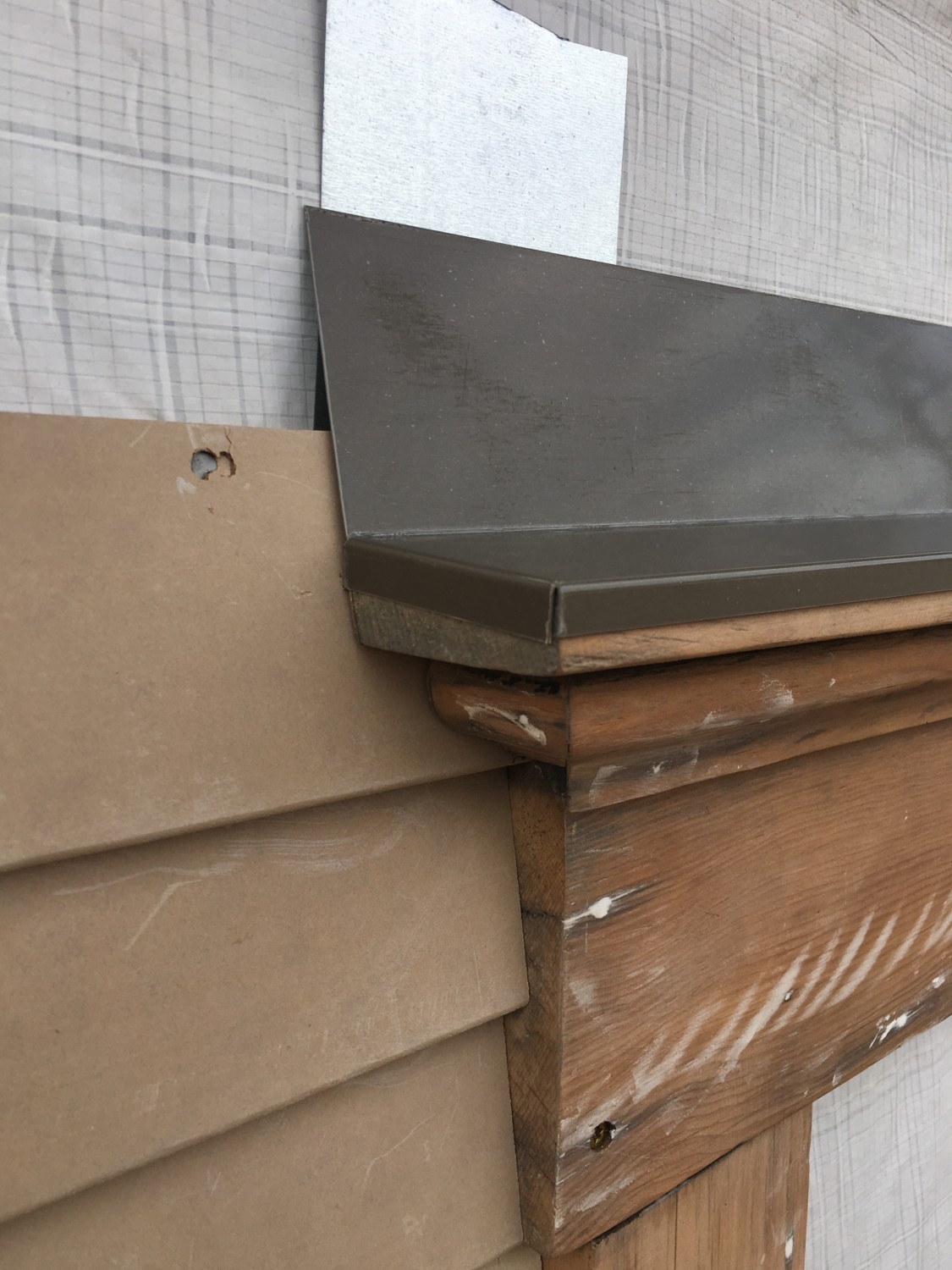 I like how you left the vertical edges of the flashing slightly proud of the vertical edges of the window cap–to my regret (and replacement). I got several too snug while re-siding; water wicked up under the flashing & wet the cap.