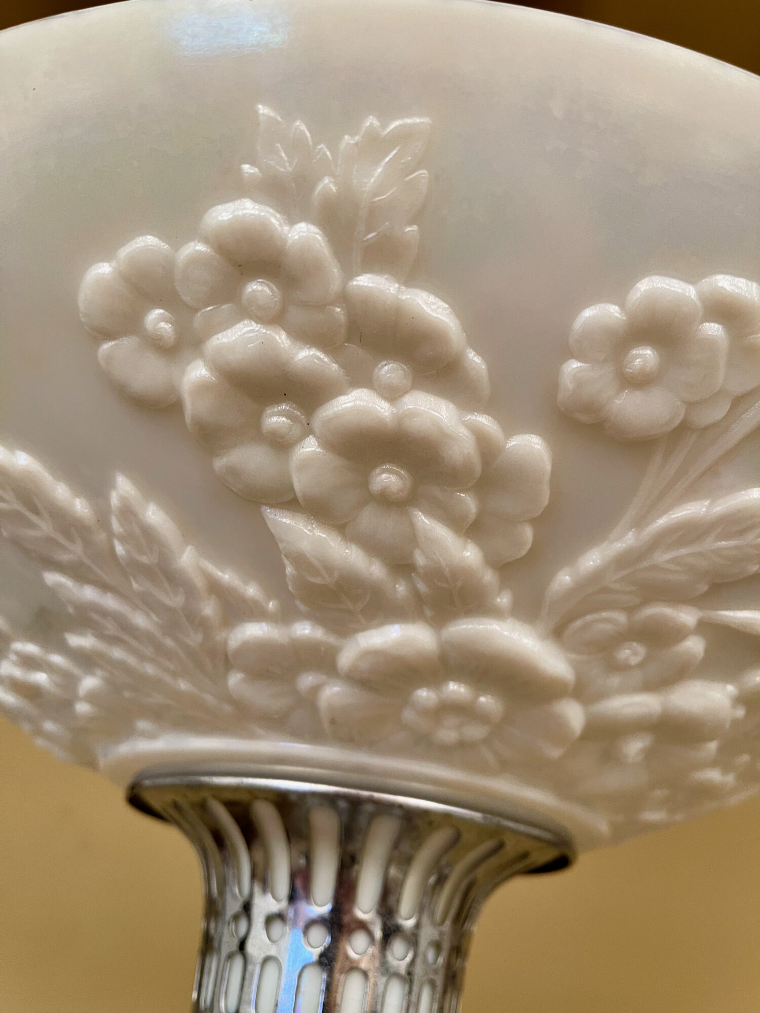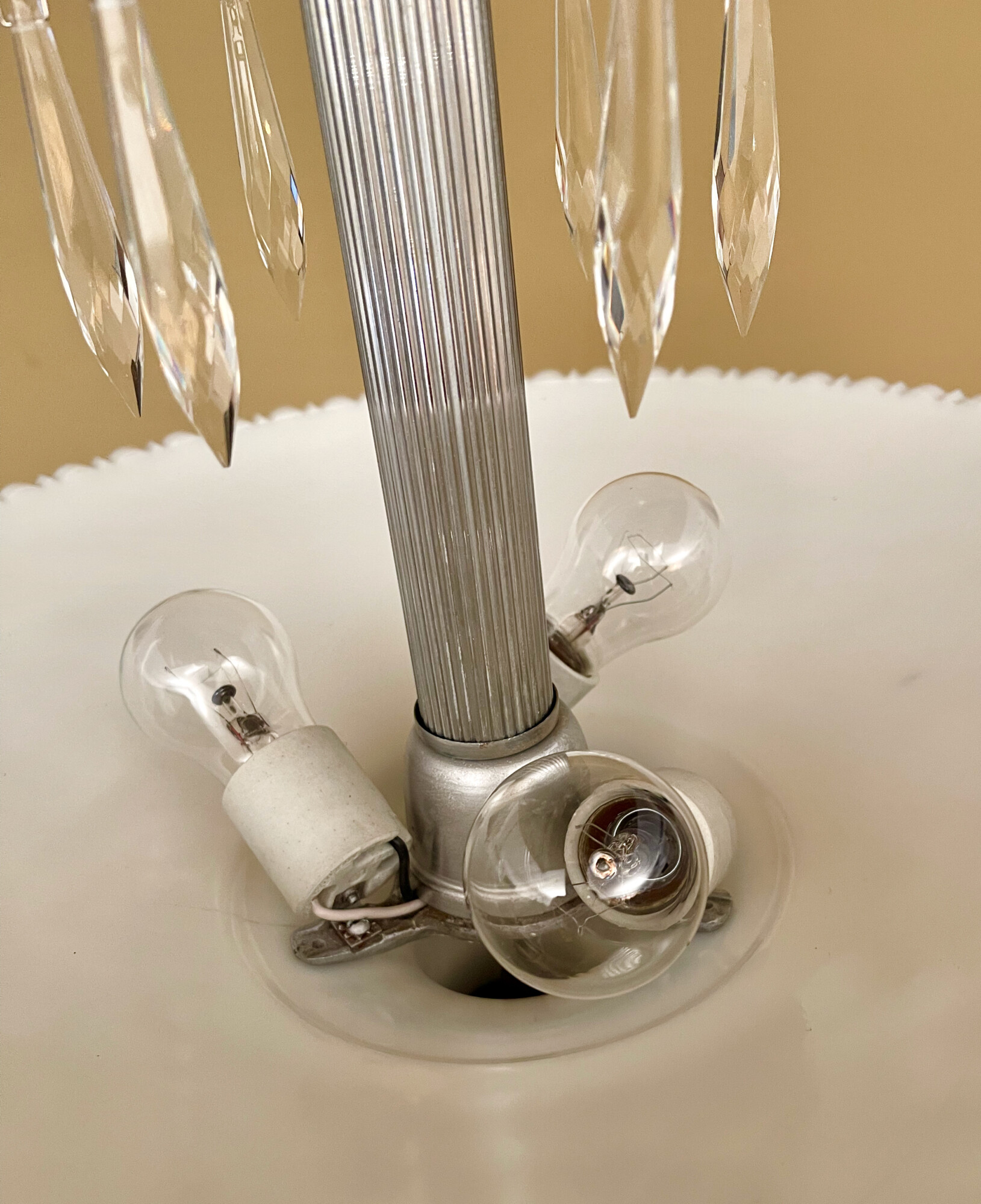 The stem. Look how dirty the edge of the shade is. And the fluted column looked corroded. Was it? Or was that just corrosion to the silver spray paint?